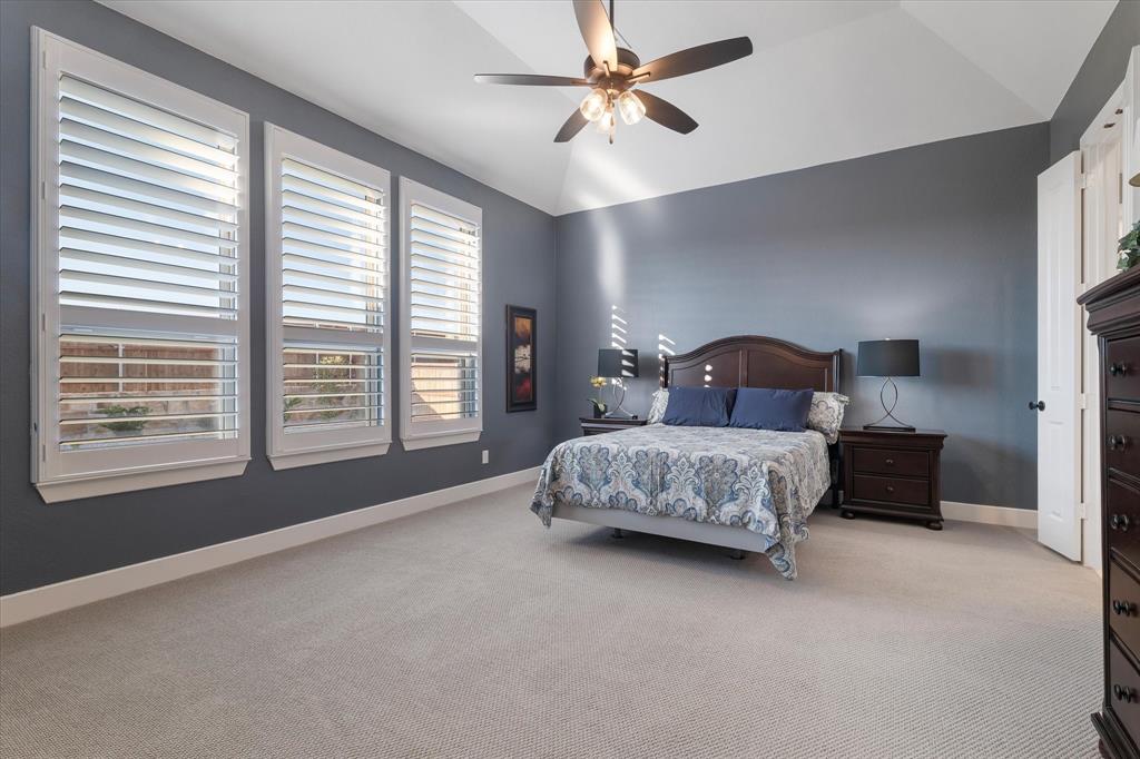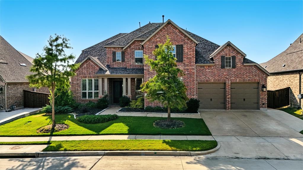 Welcome to your dream home in the prestigious Sandbrock Ranch community! This stunning two-story Highland Home boasts 4 bedrooms, 3.5 baths, and a host of luxurious features that make it truly exceptional. Nestled on a spacious 70-foot lot, this residence offers an impressive curb appeal with meticulously landscaped grounds and elegant plantation shutters throughout. The home is designed for both comfort and sophistication, featuring upgraded carpet and padding for a touch of luxury underfoot. The main floor is thoughtfully laid out with a private study, a formal dining room perfect for entertaining, and a generously sized media room for family movie nights. The chef's kitchen is a culinary masterpiece, showcasing stainless steel appliances, dual ovens, a custom-built hutch, and a walk-in pantry.