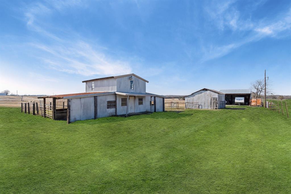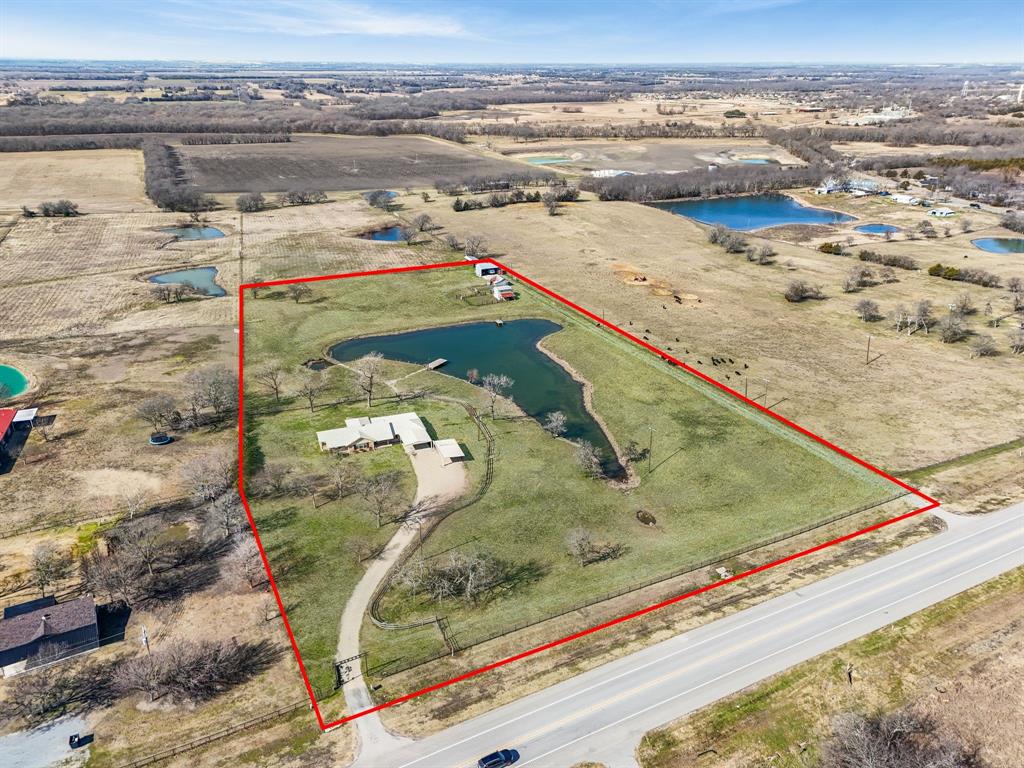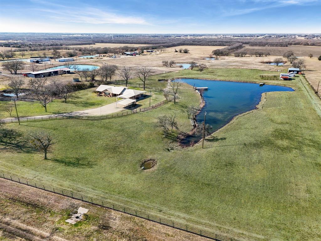 Don't miss this opportunity to purchase this amazing property with so much potential. This home sits on over 9 acres of cleared rolling topography. This home has the opportunity to be an amazing compound for a family who just wants to get away from it all. This property features a large approximately 2 acre lake that is fully stocked and has two fishing piers to enjoy anytime of the year. The property features two seperate entrances, a shop, a lean to for live stock or horses and another large shop all with electricity and water access and or connected. This property sits in the ETJ which means no city taxes and no HOA. This home needs some updates inside but is build on a firm slab foundation, with views that are unmatched.