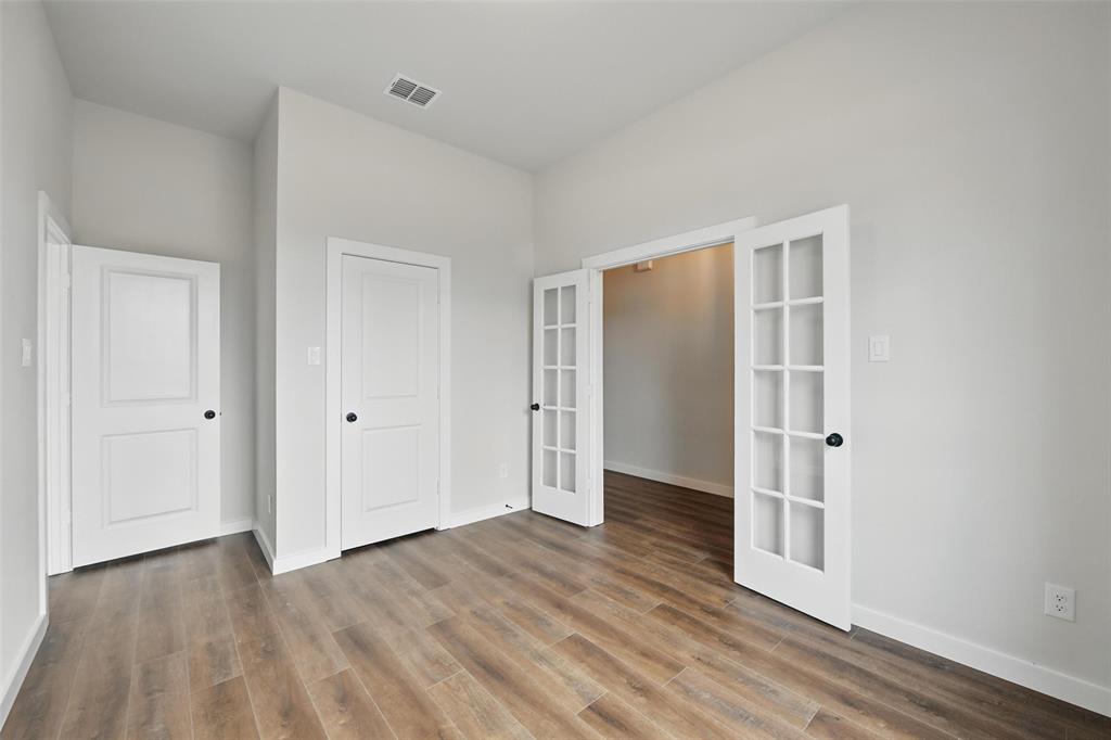 The spacious, open-concept kitchen is equipped with granite countertops, large kitchen island, stainless steel appliances, separate coffee bar, large walk-in pantry, trash bin pull out and more! The formal study, with elegant French doors, is currently set up as an office but can be easily converted into a 4th bedroom or enclosed to suit your needs.