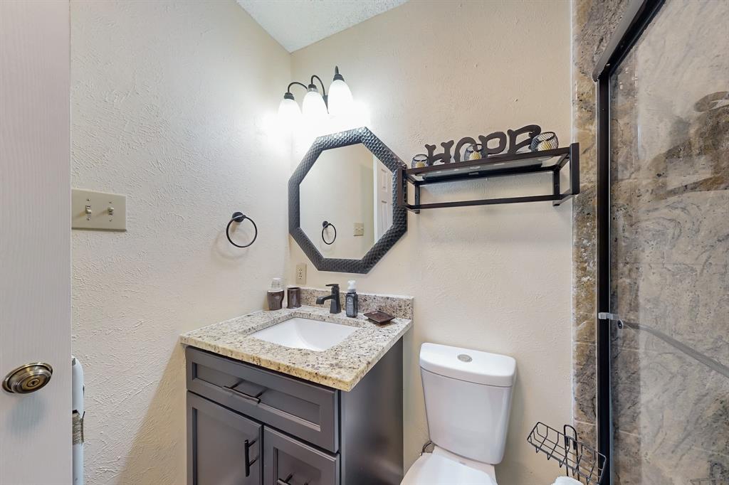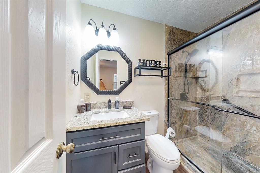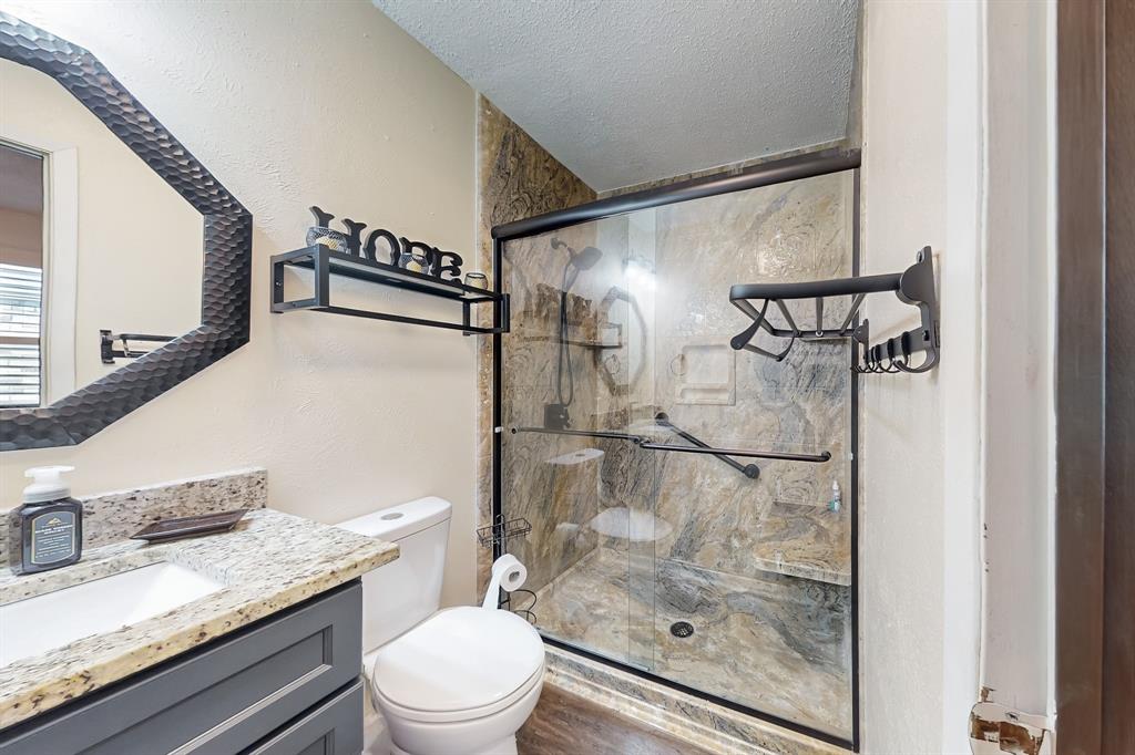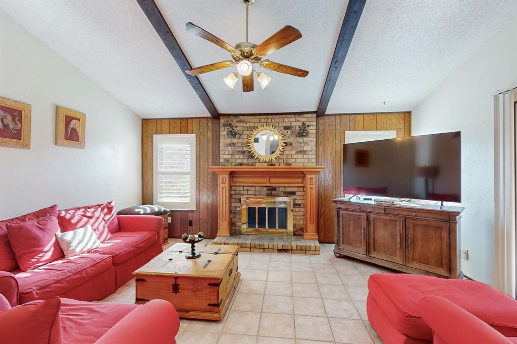 At the back of the house, you’ll find a spacious second living room featuring a gorgeous brick fireplace, making it the ideal spot to gather with family or friends. The updated bathrooms add a fresh, modern touch, and the primary suite boasts a spacious shower designed for comfort.