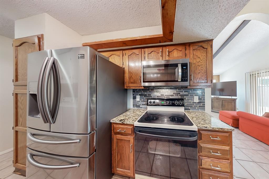 Step into this delightful three-bedroom, two-bathroom home, packed with charm and stylish updates! This delightful home greets you with a cozy front living room to the right, perfect for relaxing or entertaining. The kitchen and dining area sit at the heart of the home, featuring new granite countertops, a stylish backsplash, and stainless steel appliances.
