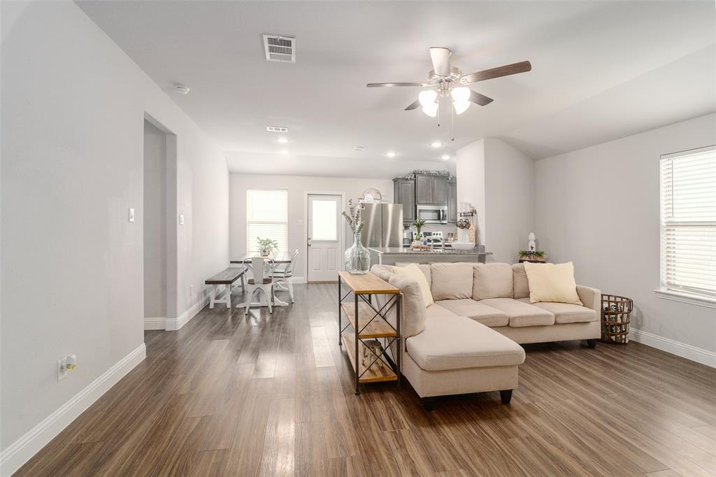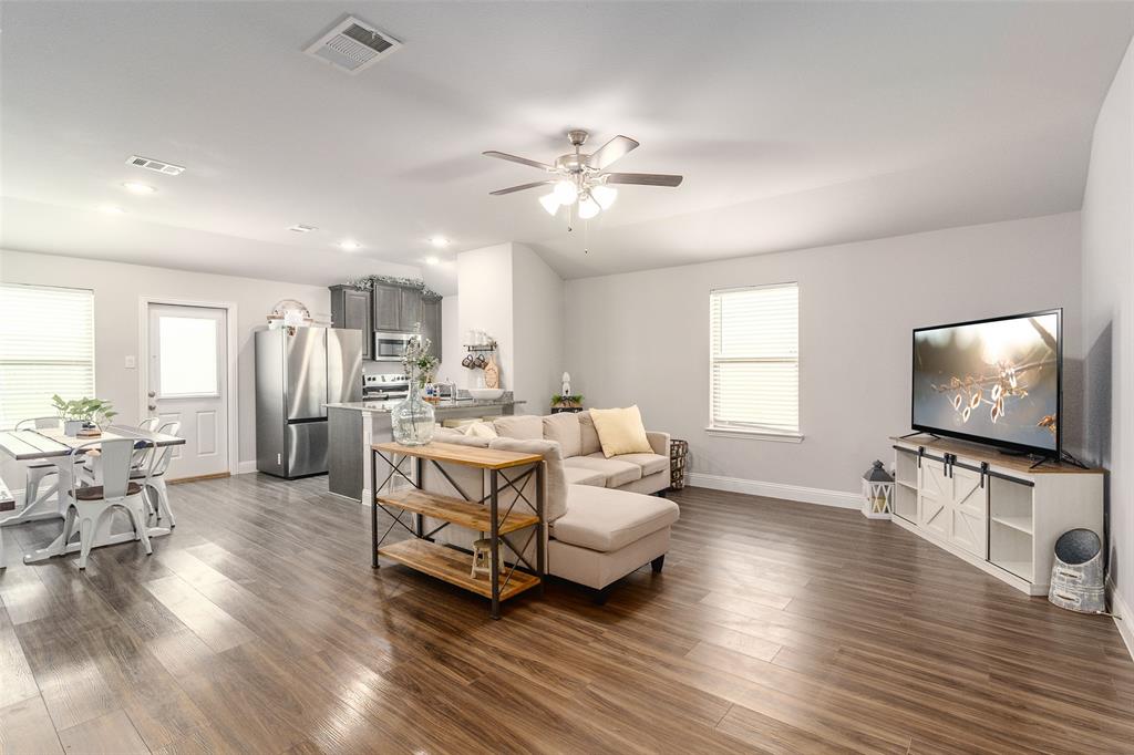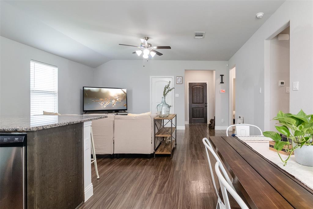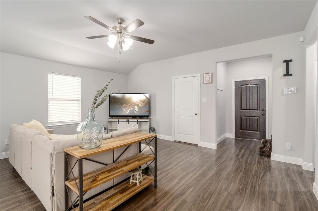 What’s not to love? Built in 2020, this beautiful and barely lived in home has functional upgrades already done for you! Upon entering the open concept, you'll find that the builder truly maximized use of the square footage available. Natural light floods the living space and is sure to make entertaining both fun and inviting. The primary suite is split from the secondary bedrooms, offering privacy and space for everyone. Finished garage with mini-split system promises comfort in all seasons, whether creating a home gym, recreation room, or additional workspace. The spacious 30x15 concrete rear patio provides plenty of room for your backyard adventures and storage shed will keep your lawn equipment hidden away. With easy access to I-30, starting your commute will be quick and painless, no matter which direction you go.