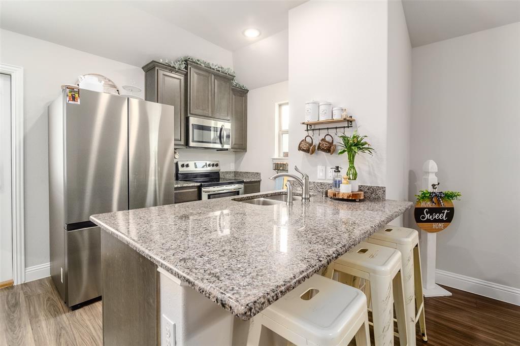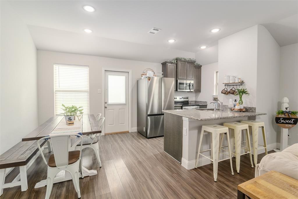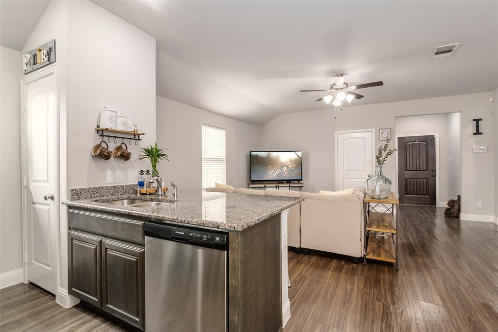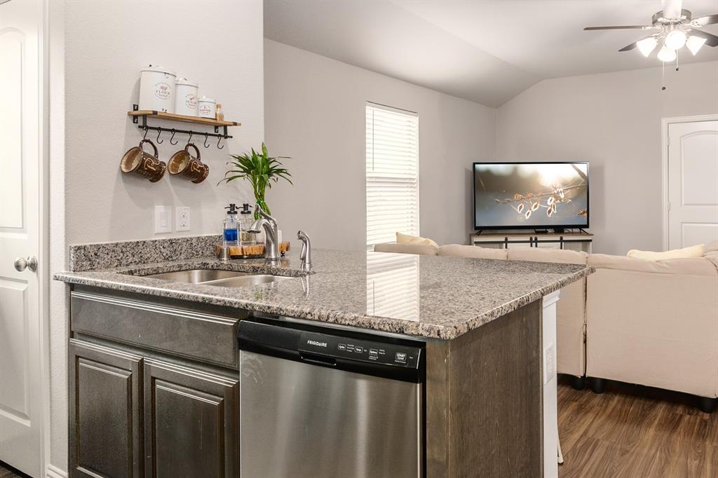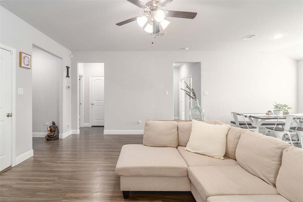 What’s not to love? Built in 2020, this beautiful and barely lived in home has functional upgrades already done for you! Upon entering the open concept, you'll find that the builder truly maximized use of the square footage available. Natural light floods the living space and is sure to make entertaining both fun and inviting. The primary suite is split from the secondary bedrooms, offering privacy and space for everyone. Finished garage with mini-split system promises comfort in all seasons, whether creating a home gym, recreation room, or additional workspace. The spacious 30x15 concrete rear patio provides plenty of room for your backyard adventures and storage shed will keep your lawn equipment hidden away. With easy access to I-30, starting your commute will be quick and painless, no matter which direction you go.