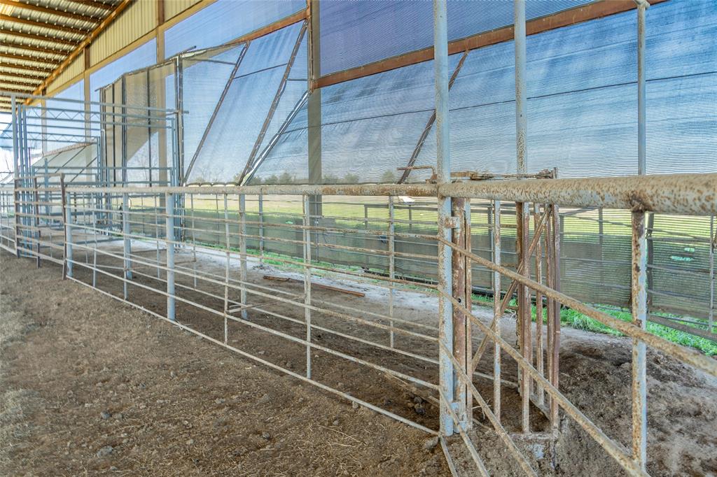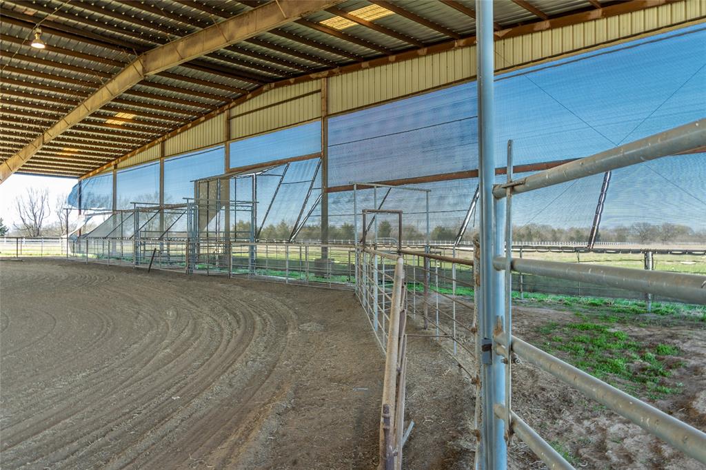 Equestrian enthusiasts will appreciate the impressive 175' x 340' lighted covered sand arena, equipped with a Priefert Roping Air Chute, Roping Boxes, Alley, working pens & large pond. There's also a spacious 8,000 SF covered concrete corral, RV hookup, ideal for various livestock activities & ample room for parking and turning around equipment.