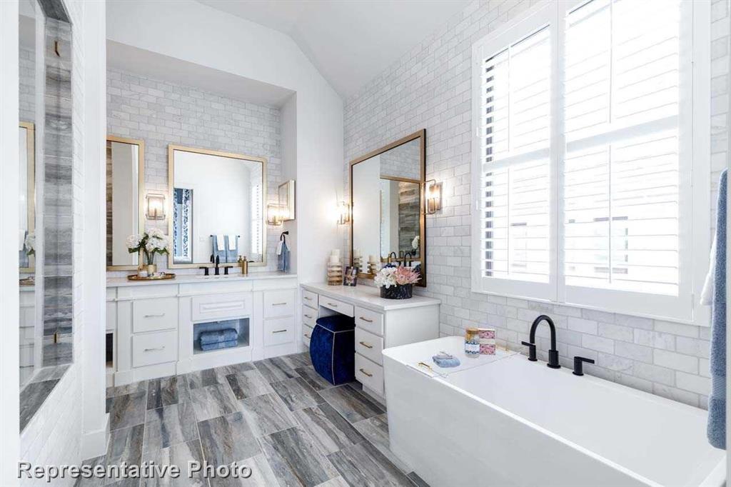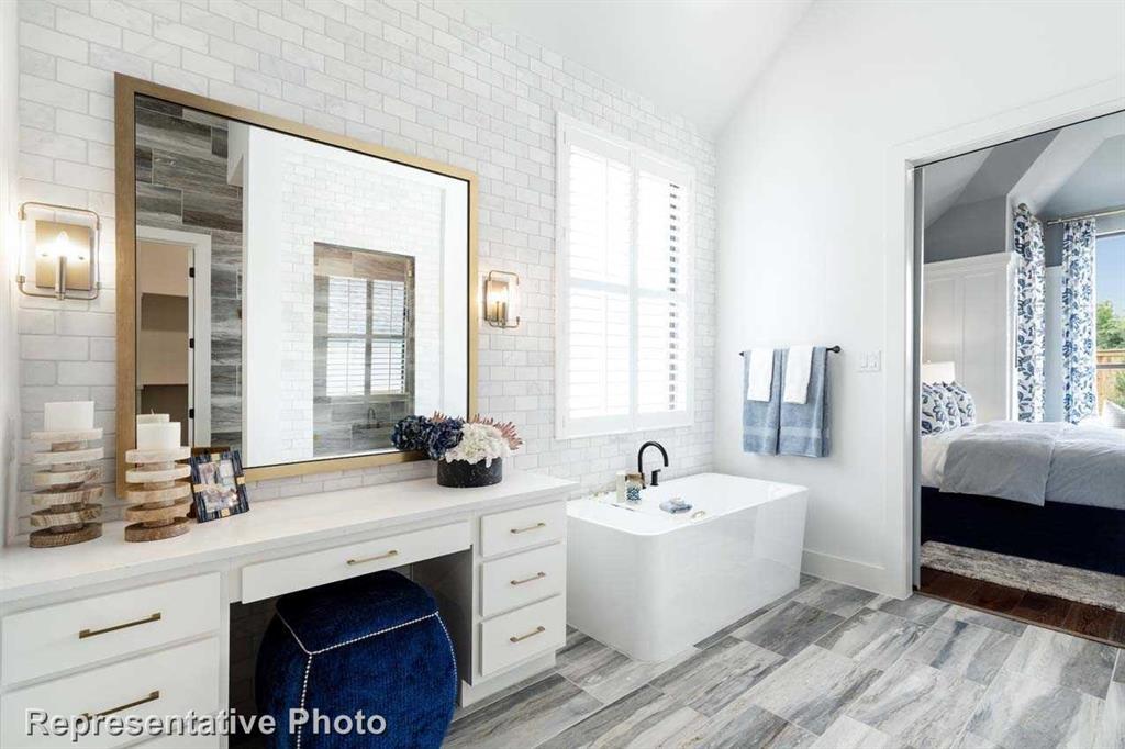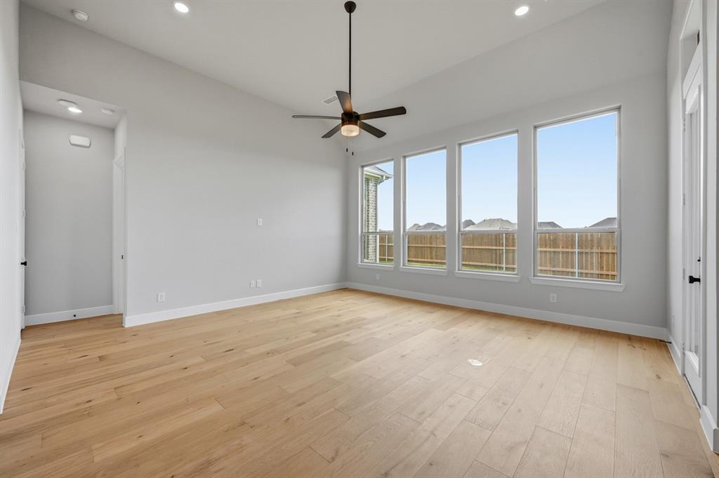 MLS# 20834819 - Built by Highland Homes - September completion! ~ Beautiful single-story home with 4 bedrooms, 3 and 1 half baths with a large extended primary with a large rectangular freestanding tub in primary bathroom. Has large sliding glass doors leading out the covered extended patio. There is a cozy fireplace in the keeping room. There is wood in all primary bedroom, all common areas and the study.
