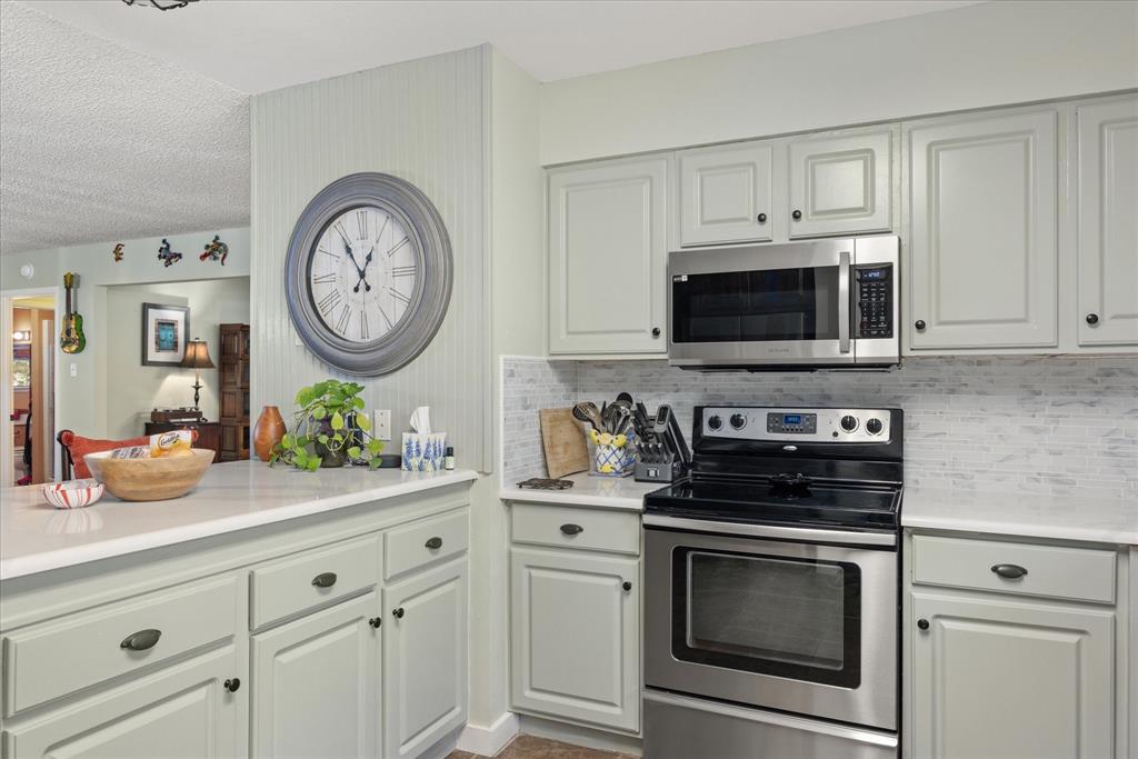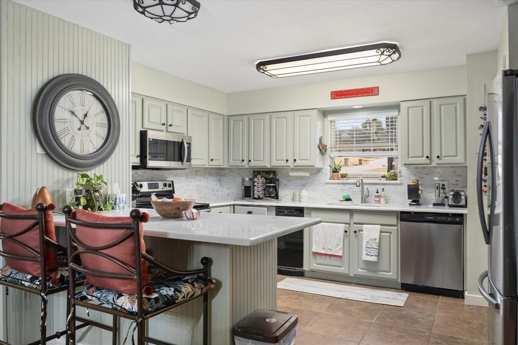 Nestled among towering trees along a tranquil creek, this beautifully updated home offers the perfect blend of comfort and style. Inside, plantation shutters and fresh interior paint create a warm and inviting atmosphere. The modern kitchen features brand-new stainless steel appliances, quartz countertops, and ample cabinetry—perfect for any home chef! The spacious living room boasts built-in bookcases and an electric fireplace, providing a cozy space for relaxation. Recent upgrades include a new hot water heater (2024) and a new HVAC system (2024) for worry-free living. Step outside to an incredible back patio overlooking the serene creek, where you can unwind and enjoy nature's beauty. Don't miss this rare opportunity to own a peaceful retreat with modern conveniences!