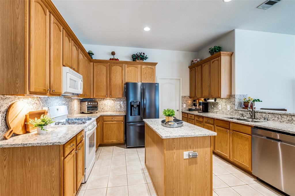 This charming and meticulously maintained home is nestled in the heart of Savannah,TX with easy access to the clubhouse which features a library, kitchen, café, weight room and sauna! The community also boasts its own water park, pools, parks and playgrounds, dog parks, tennis, basketball and volleyball courts as well as walking paths. This bright and open home offers a formal dining room with doors leading onto the spacious front porch. The kitchen is open to the living room and has granite counter tops which were installed in 2024 and a charming dining nook with built-in seating. The backyard has a covered patio, automatic sprinklers and a 10'x16' shed was built in 2023, which gives lots of added storage space! This lovely home boasts many upgrades including a 16 seer HVAC and class 4 impact resistant roof both installed in 2023 as well as gutters (2024). Come and make this beautiful home yours!