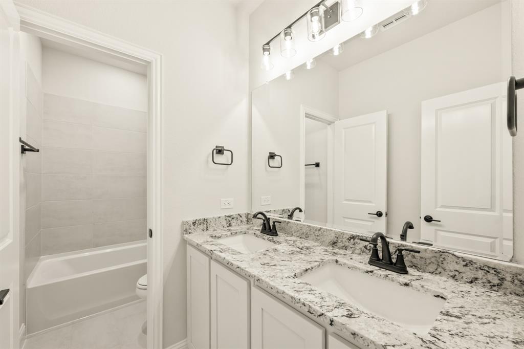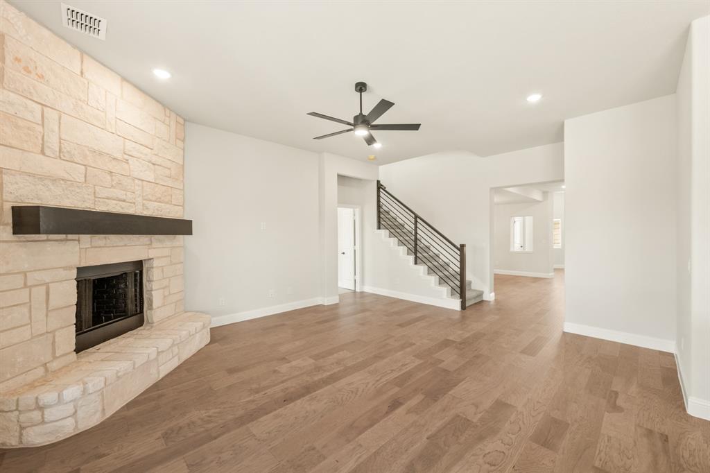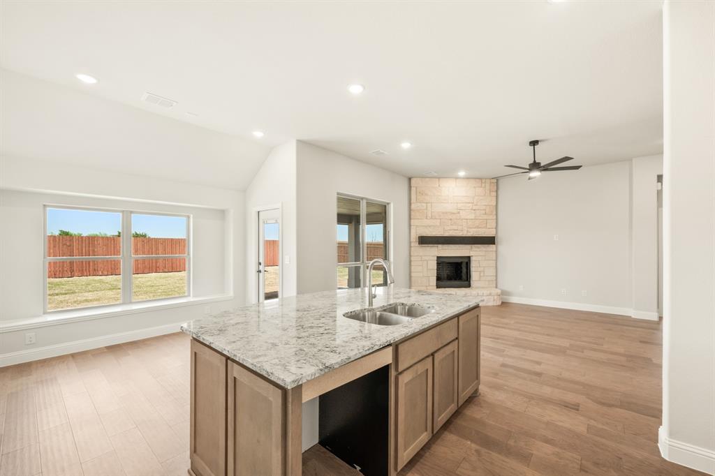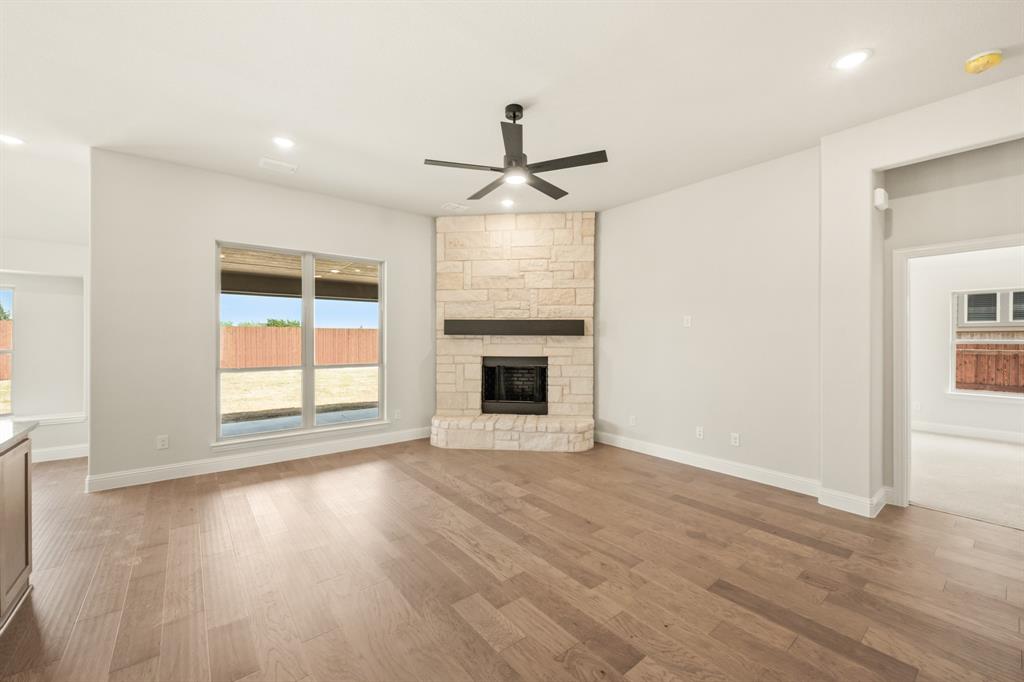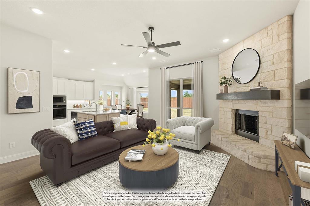 NEW! NEVER LIVED IN! Ready for Immediate Move In! Bloomfield's Carolina IV beckons with a captivating brick and stone elevation, complemented by cedar garage doors and an elegant 8' Front Door, further enhanced by charming uplights. Inside, timeless wood floors guide you through a beautifully crafted home where a Deluxe Kitchen takes center stage, featuring pot and pan drawers, a wood vent hood, and sleek all-electric stainless steel appliances. Quartz countertops throughout add sophistication, while window coverings provide comfort and privacy. Gather around the majestic Stone-to-Ceiling Fireplace in the expansive Family Room, a cozy yet refined space accented by window seats. The Rotunda Entry and Formal Dining invite gracious entertaining, while the Primary Suite offers a serene retreat with a walk-in closet and garden tub. Enjoy extended living space outdoors on the oversized interior lot with an expansive covered patio perfect for leisurely evenings. Complete with a 2.5-car garage and thoughtful design elements, this home seamlessly blends elegance and functionality. Visit our model home in North Grove to learn more.