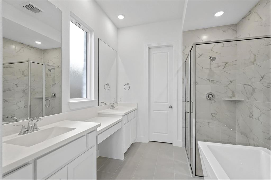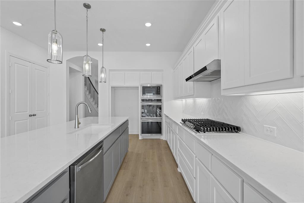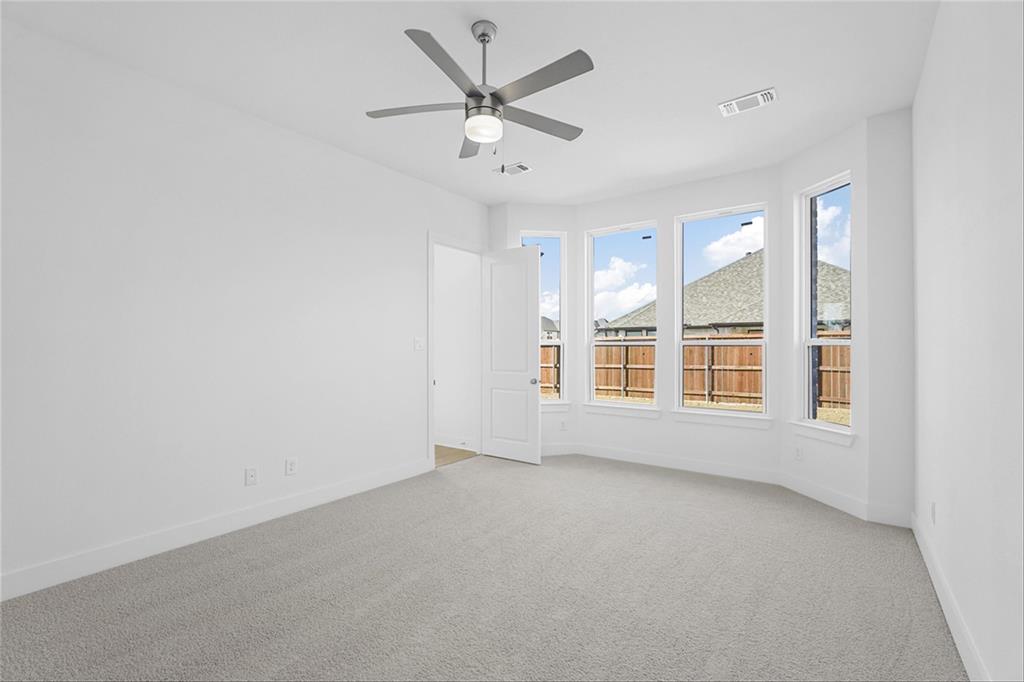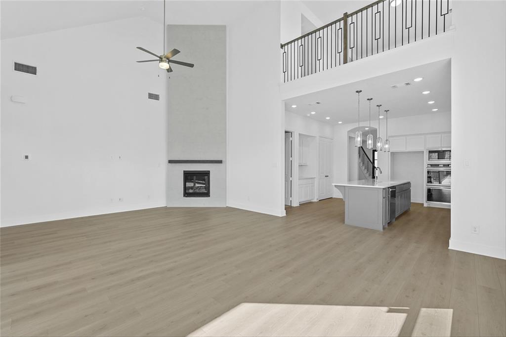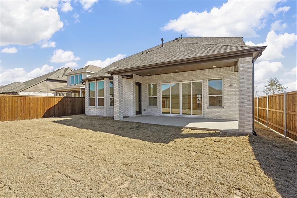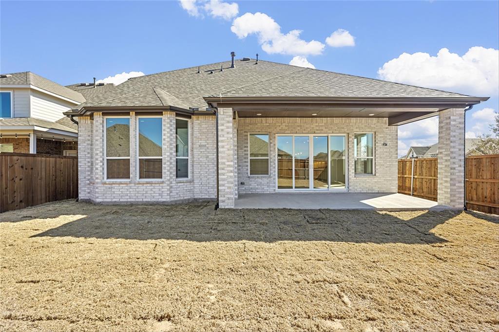 MLS# 20840898 - Built by Highland Homes - Ready Now! ~ Amazing Cambridge plan, offering 5 Bedrooms, 5 full baths and a 1 half bath. Love the media room downstairs, off of the kitchen, beautiful full wall tile fireplace in family room, sliding glass doors in family room that opens up to a magnificent covered patio. Lots and lots of cabinets in kitchen, built in double ovens, 5 burner gas cooktop, pot and pan drawers in kitchen. Wrought iron railing throughout, white brick!