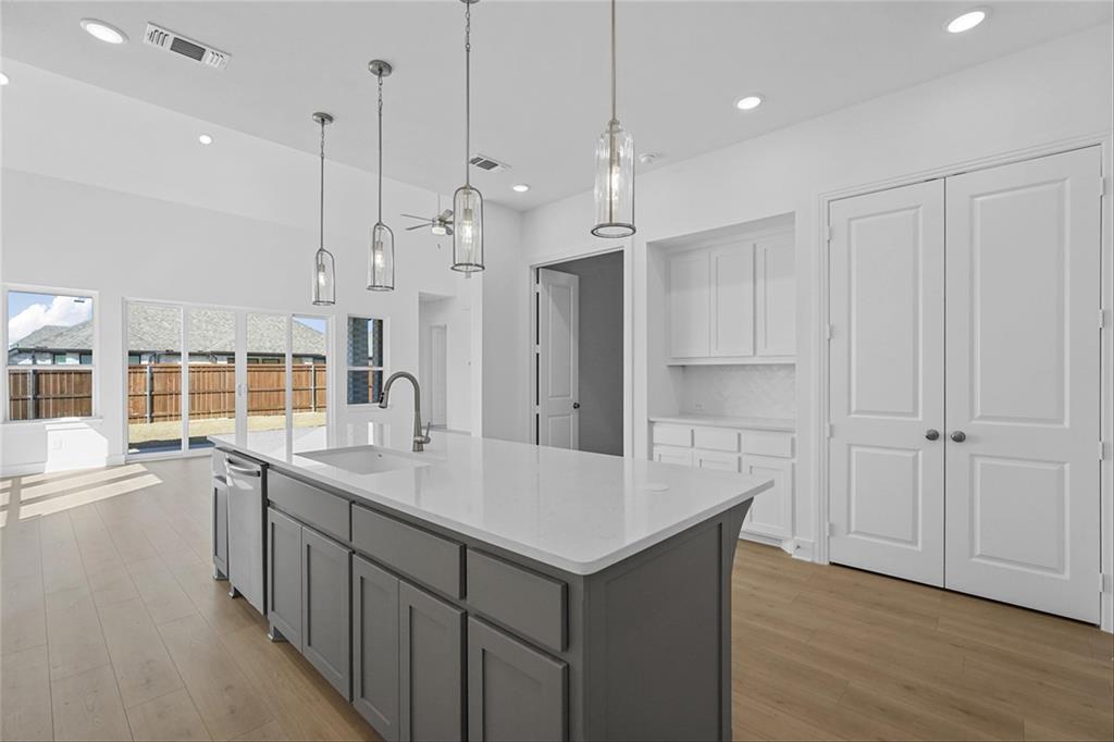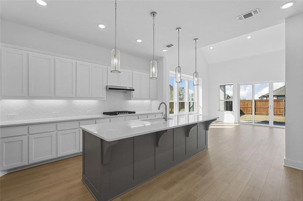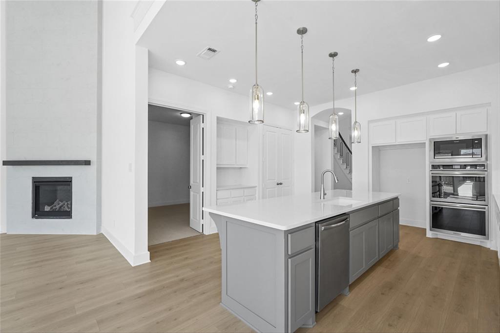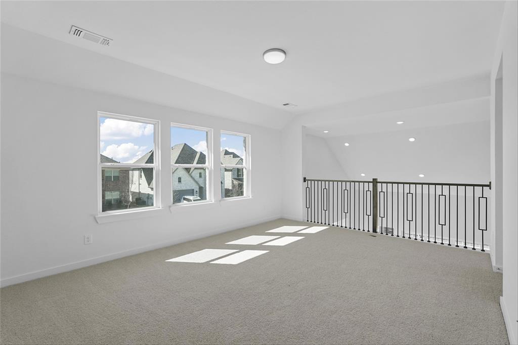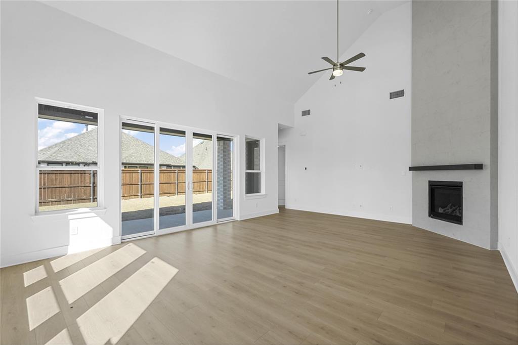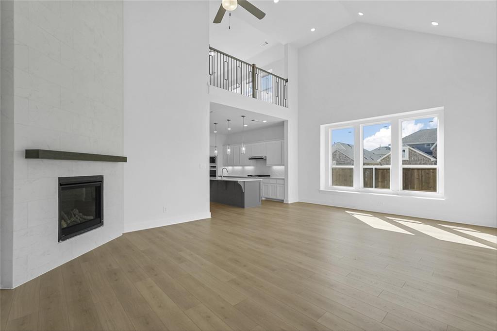MLS# 20840898 - Built by Highland Homes - Ready Now! ~ Amazing Cambridge plan, offering 5 Bedrooms, 5 full baths and a 1 half bath. Love the media room downstairs, off of the kitchen, beautiful full wall tile fireplace in family room, sliding glass doors in family room that opens up to a magnificent covered patio. Lots and lots of cabinets in kitchen, built in double ovens, 5 burner gas cooktop, pot and pan drawers in kitchen. Wrought iron railing throughout, white brick!