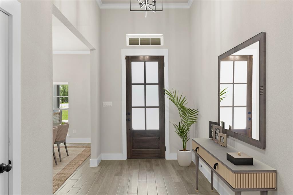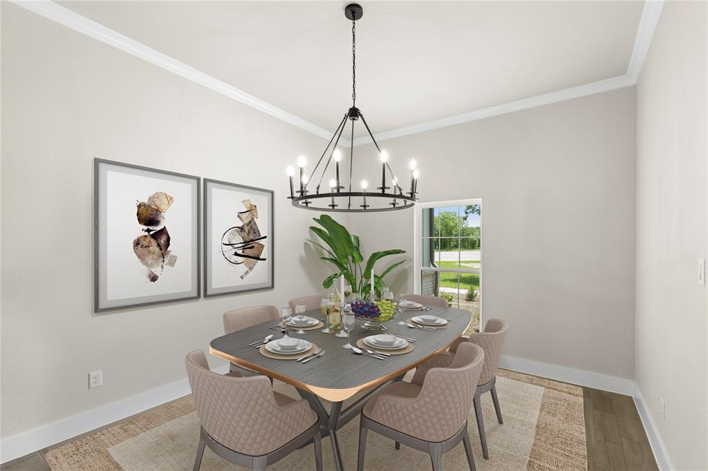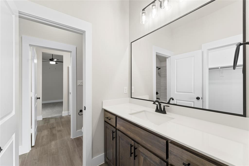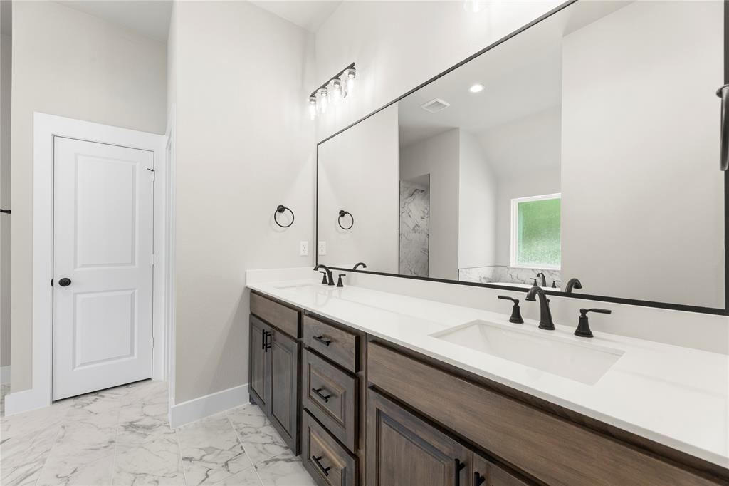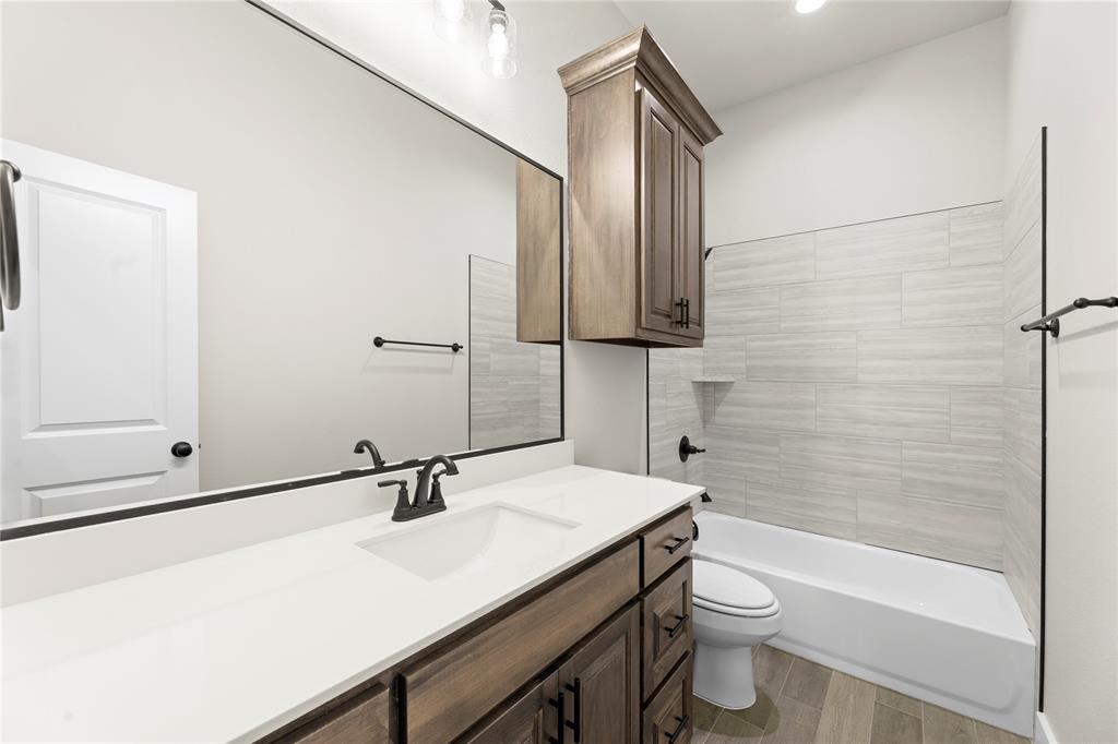 MLS# 20841408 - Built by Brookson Builders - Ready Now! ~ Move-In Ready! Newly constructed, 2977 sqft, 4-bedroom, 3-bathroom Single Family Residence in the sought-after Arbor Hills subdivision offers a blend of comfort and style. With a traditional - farmhouse housing style, the home features a spacious open floor plan, decorative lighting, and vaulted ceilings. The kitchen is a cook's dream with a convenient island and walk-in pantry. The home boasts a living room, game room, and a dining room, perfect for entertaining. Relax by one of the two brick fireplaces, located in the family room and outside for cozy gatherings. Additional features include a 3-car garage, wood look tile flooring, and a vaulted cabinets to the ceiling. The exterior offers a covered patio and rain gutters. The home is situated within Peaster ISD.