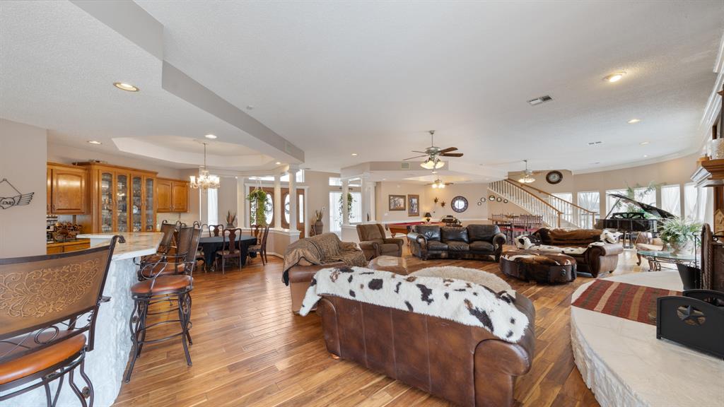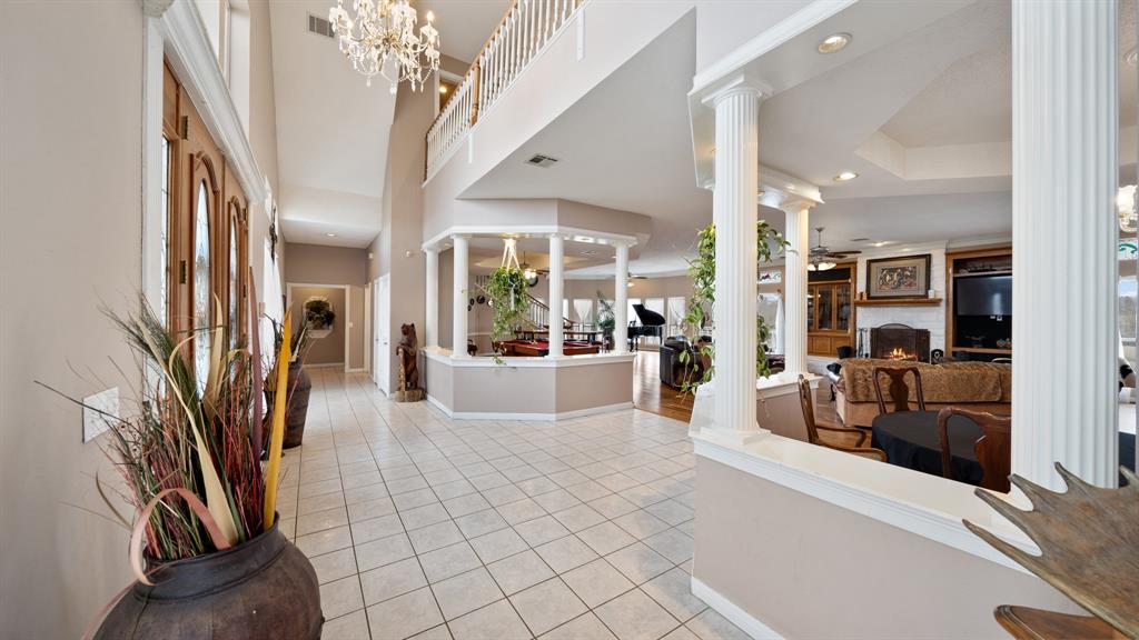 This remarkable property combines expansive living, investment versatility, and stunning land all in one. Set on approximately + or - 32.17 acres of open pasture, scattered trees, and a serene pond, the estate offers both privacy and opportunity for those seeking a primary residence, retreat, or possible income-producing venue. The main home provides six well-appointed bedrooms—three on the main level and three upstairs. The downstairs master suite is complemented by two additional bedrooms with a shared handicap-accessible bath, while each upstairs bedroom features its own private bath. An attached mother-in-law suite with a separate entrance enhances the home’s adaptability for multi-generational living or guest accommodations.