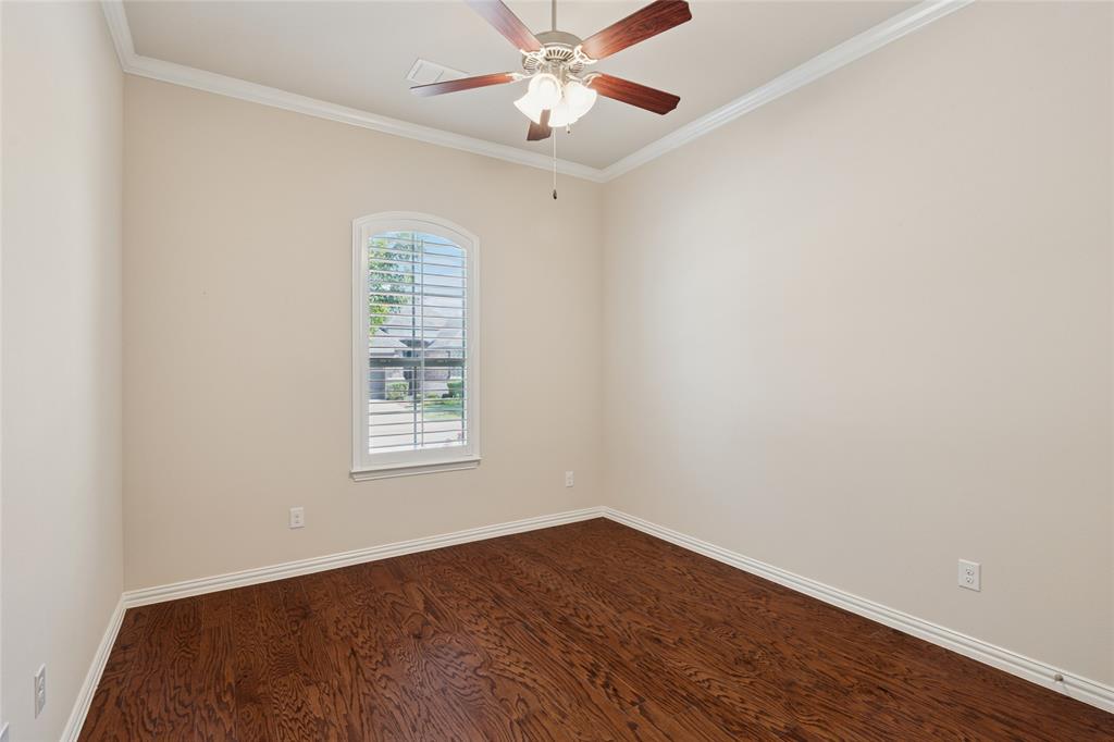 Welcome to this stunning and elegant home in excellent condition, in an exclusive 55+ active adult gate community with numerous upgrades. Hardwood flooring throughout, cathedral and recessed ceilings, and crown molding in the living areas and primary suite. With a unique media room that was carefully designed for family entertainment . The gourmet kitchen is a chef’s dream, featuring granite countertops, a built-in island, stainless steel appliances (cooktop, microwave, dishwasher, and vent-a-hood), lighting, and updated fixtures. Additionally, a fantastic laundry room and ample storage spaces with access to the master walking closet and hall, add to the home’s functionality and charm. Throughout the home, you’ll find custom plantation-style shutters, adding charm and elegance, designed with energy efficiency in mind. This home is foam encapsulated, ensuring low utility costs even during hot Texas summers where style, comfort, and low-maintenance living come together perfectly. Enjoy year-round relaxation in the screen enclosed back patio, offering a private retreat perfect for morning coffee or a good tea in the evening. Recent updates include a new roof (2024) and a new garage door (2024) for peace of mind. The 2-car garage is a true bonus, offering a floored attic and a motorized storage lift, making downsizing from a larger home easier to manage. Just 6 minutes away is the beautiful Elmer W Oliver Nature park with 2 miles of scenic walking trails. Less than a block away is a fitness center with a 4,500 sq. Ft. activity center a swimming pool, and a pickleball court. All designed to enhance your active lifestyle. THE COMMUNITY ASSOCIATION TAKES CARE OF LAWN MAINTENANCE, LAWN WATERING, LANDSCAPING, EXTERIOR UPKEEP, REPAIRS, AND AS WELL AS EXTERIOR HOME INSURANCE