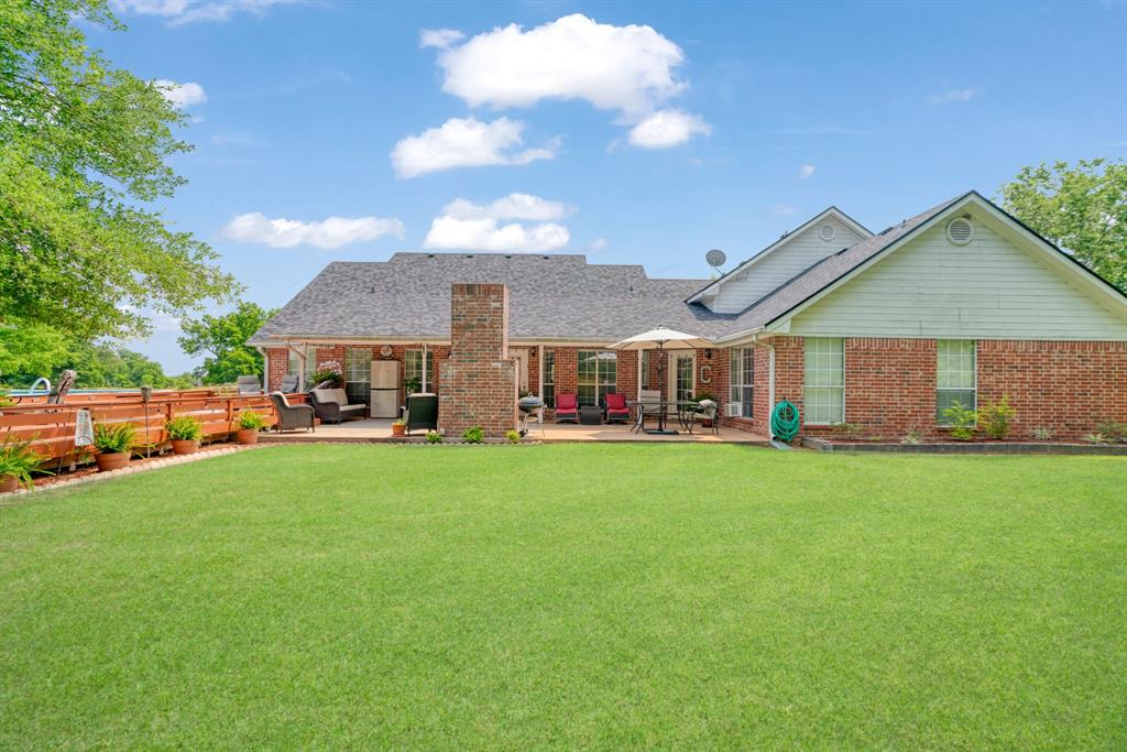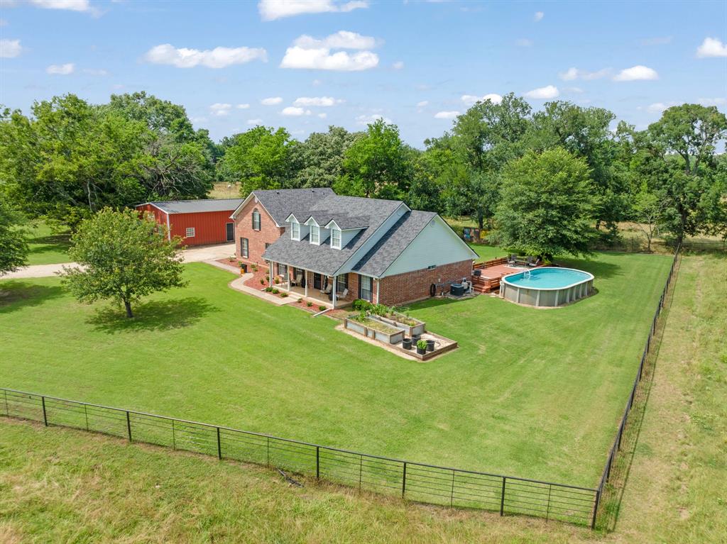 WELCOME to your slice of paradise. A custom built brick retreat on 78 acres! Located in the heart of Prairiland ISD, this stunning custom built home offers a comfortable mix of luxury and ranch charm. Property is set against a backdrop of rolling terrain and breathtaking natural beauty. 4 spacious bedrooms, 3 downstairs and 1 upstairs that can also double as a bonus or play room and 3 and one half baths to accommodate everyone! The foyer leads to a bright and airy open concept living and dining space that is perfect for entertaining. The well appointed kitchen features a large breakfast island with granite counters and large windows to enjoy the picturesque views. You can also enjoy many evenings dining on the back porch with the wood burning fireplace and enjoying the tranquility of Texas living.