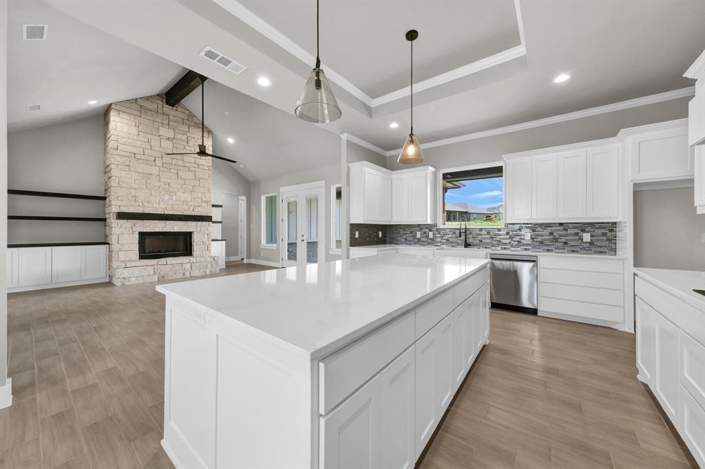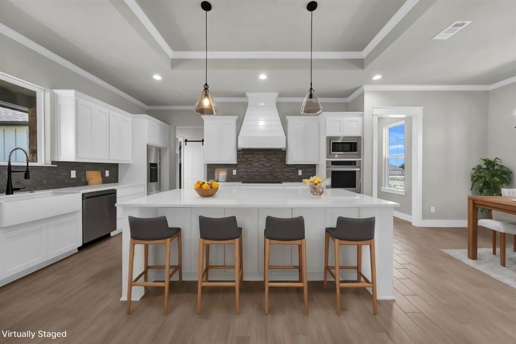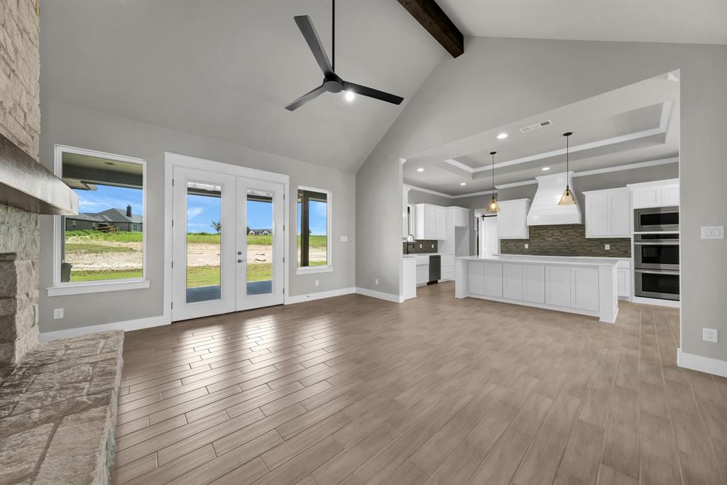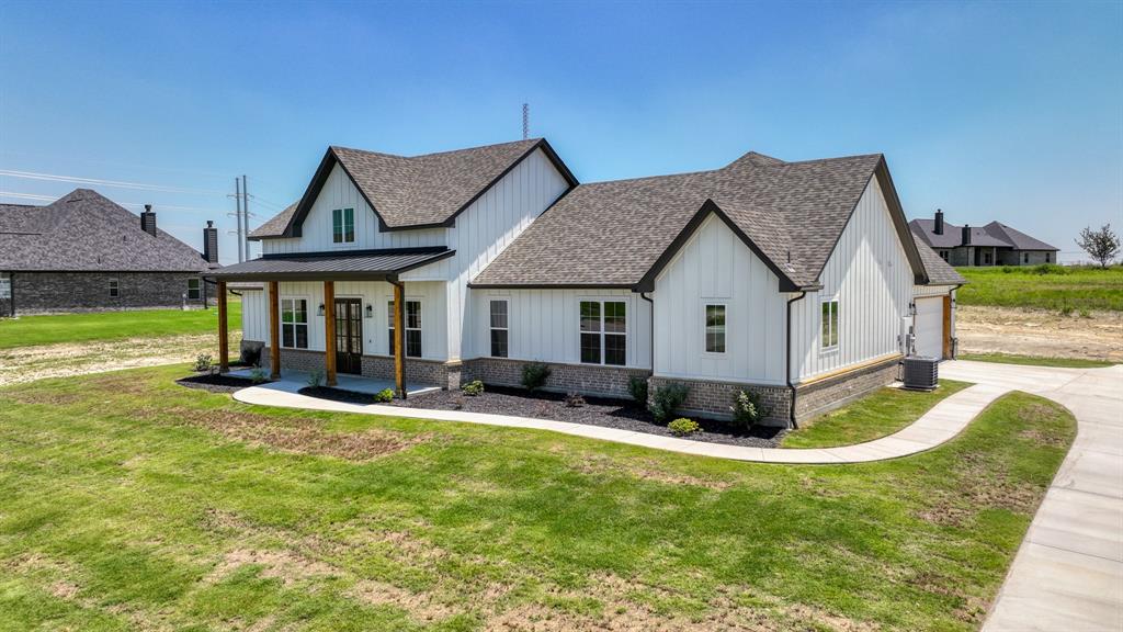 Motivated seller who is also willing to do owner finance. Discover your dream farmhouse nestled in the serene beauty of Calhoun Acres, Azle! This newly built home by MK Homes sits on an expansive one-acre lot, giving you all the space you desire without the hassle of an HOA. Step inside this masterpiece to find an open floor plan bathed in natural light, perfect for entertaining. The gourmet kitchen boasts stainless steel appliances, an oversized island, a large walk-in pantry, and a cozy coffee nook, with a pantry you do not want to miss! Imagine preparing meals while your loved ones gather around the premium stone fireplace in the living room, with its stunning wooden beams and cathedral ceiling. Convenience meets luxury with the three main rooms downstairs, including two spacious bedrooms sharing a Jack and Jill bathroom, each with large walk-in closets, an exquisite primary suite, and a separate office space can be tailored to your needs as a study or baby room or 4th bedroom. The upstairs area offers a versatile second living space – perfect for a game room, bonus room, or an extra bedroom. Practicality is not forgotten – your new home features a mudroom right off the garage and an oversized laundry room with ample storage. Outside, enjoy the peacefulness and freedom of your one-acre lot. Whether you're hosting outdoor gatherings or simply unwinding in your private oasis, this home has it all. Come enjoy as you make many memories on both beautifully crafted porches.