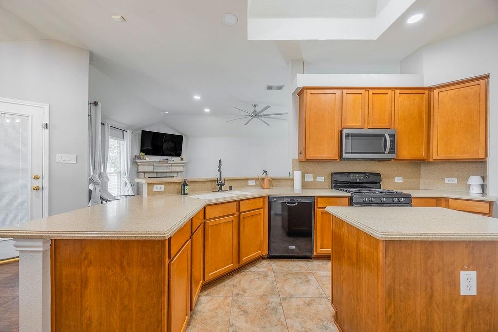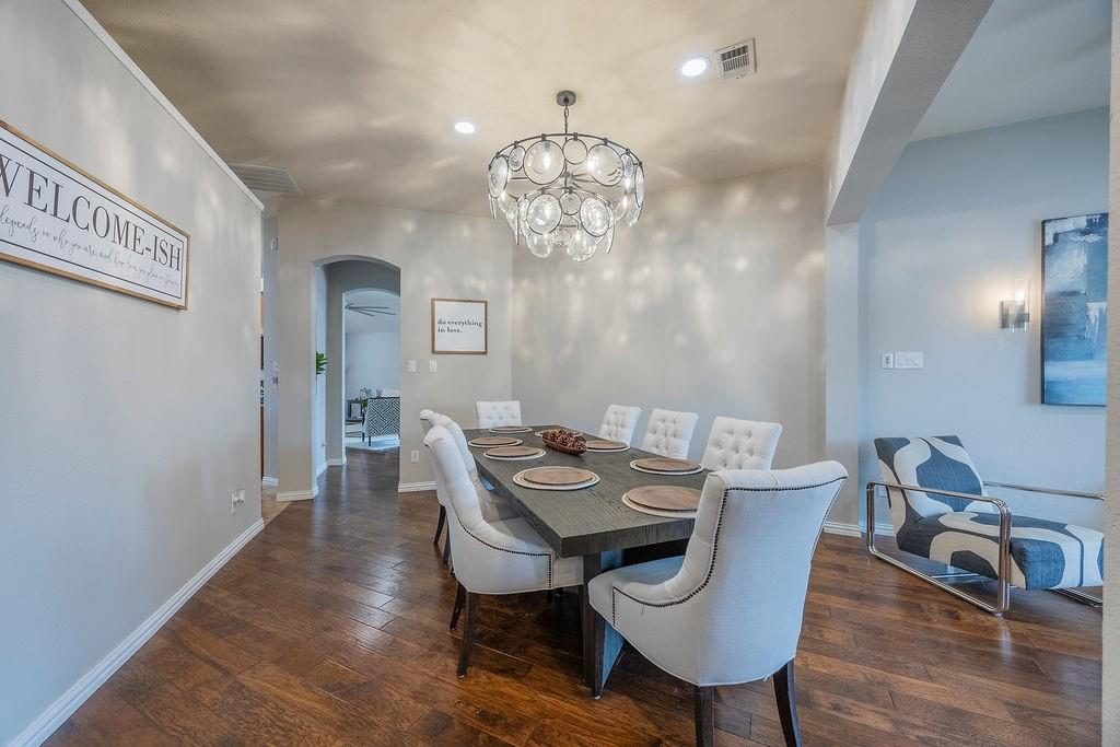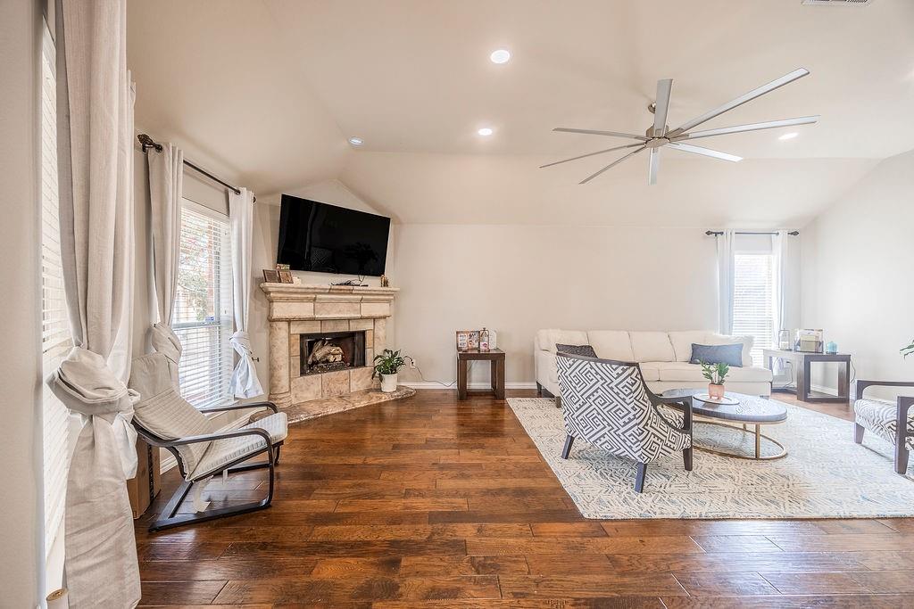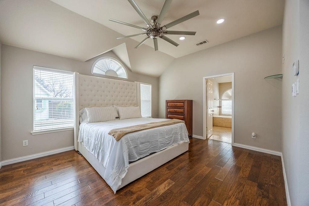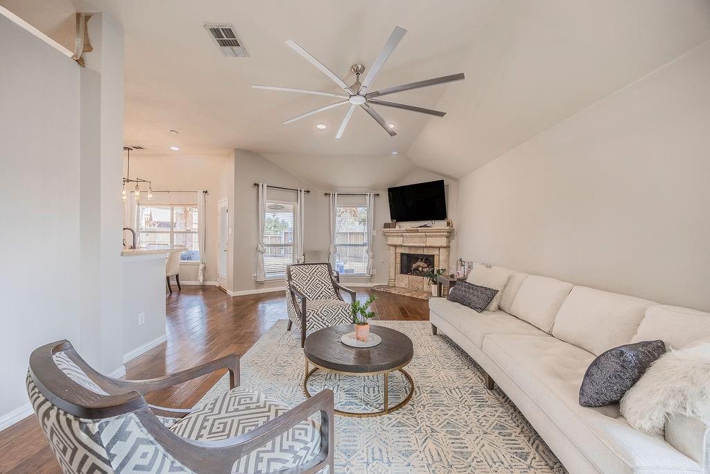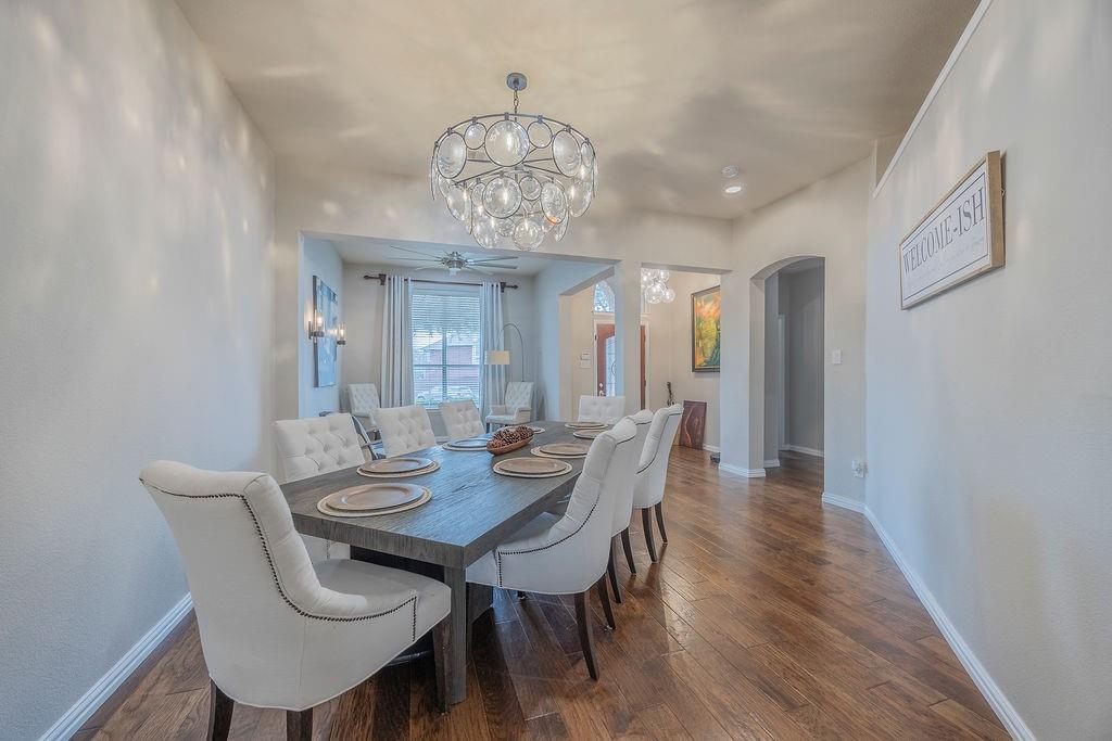 This beautiful property is located in the much sought after Stewart Peninsula master-planned community. Amenities include lakeside, neighborhood elementary school, golf course, playgrounds two pools and more. An extra large lot with a 8' wood privacy fence, alley access through an electric driveway gate, a custom made 10'x10' storage shed, Leaf Filter gutters, and a large covered back patio space, perfect for entertaining. Inside this 1-story beauty you'll find beautiful Hickory wood floors throughout - no carpet! There are 4 bedrooms, Formal living and dining rooms with flex space for an office. Open floor plan with 10' high ceilings, large skylight in the kitchen with loads of natural light, gas log fireplace and B'fast nook.