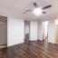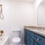 Step inside to discover an open floor plan that seamlessly connects the living, dining, and kitchen areas, making it ideal for entertaining. The kitchen is a true showstopper, boasting sleek white cabinetry, gold hardware, and modern blue accents that add a touch of sophistication. Updated lighting throughout the home enhances the warm and welcoming ambiance.