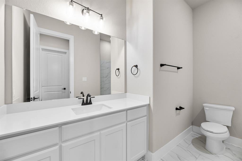 This open-concept home gives you plenty of reasons to host dinner parties or holiday events for your friends and family with a spacious dining room, oversized island within the kitchen and a charming fireplace to gather around at the end of the night. The owner’s suite is situated just off of the family room and overlooks the pristine backyard scene. With the owner’s bathroom featuring a standing bathtub, separate walk-in shower, a double vanity and an incredible walk-in closet—it’s as if you have your own private spa in the comfort of your own home. Moving upstairs, the room opens up into an ideal loft area—giving you the option of creating a second living room for your home. With an additional bedroom and bathroom located on the second floor as well, you’ll never run out of space in this 3,130 square foot home.