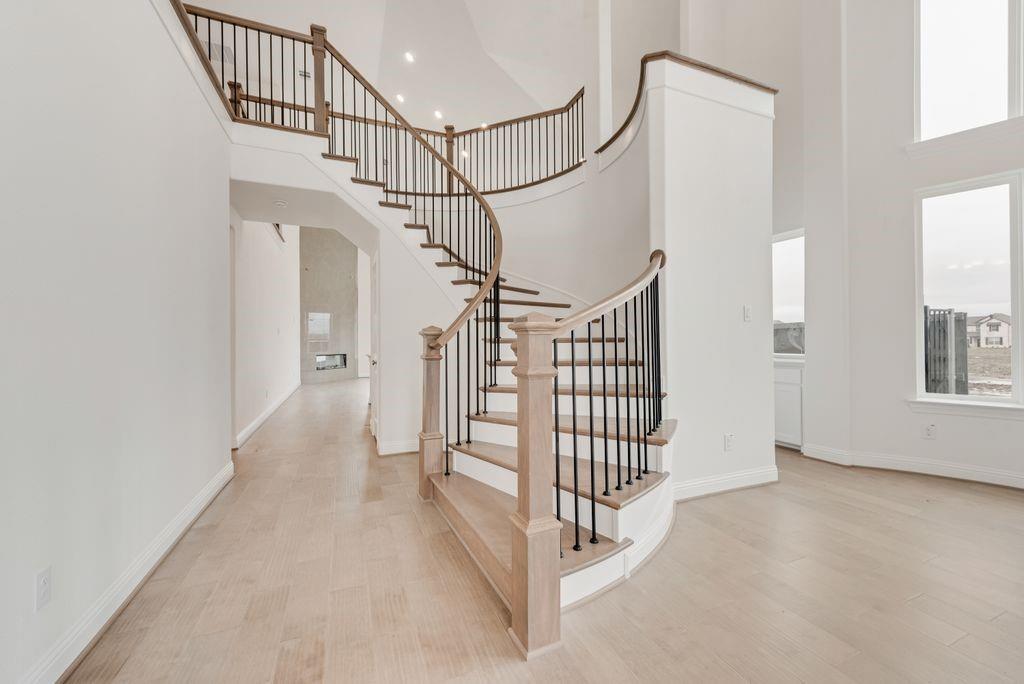 New Grand Home nestled in the highly sought-after, family-friendly community of Prairie Ridge, this brand-new home offers the perfect blend of comfort and style. Enjoy resort-style amenities, including pools, parks, playgrounds, and scenic walking trails. This spacious, open-concept floor plan features formal living and dining areas, a vaulted family room with a striking two-story linear fireplace, and a huge upstairs game room – perfect for entertaining. The home boasts luxurious 8-foot interior doors, rich hardwood floors, and pre-wiring for surround sound. The gourmet kitchen is a chef's dream, complete with Omegastone slab countertops, a 5-burner gas cooktop, a custom vent hood, convenient pull-out trash and pots & pans drawers, and a deep full bowl sink for easy meal prep. Relax in the spa-like primary bath, featuring a free-standing tub, frameless glass shower, and sleek rectangular sinks. Downstairs Guest Suite or private Home Office. Oak staircase with elegant wrought-iron balusters add a touch of sophistication. This home is not only beautiful but also energy-efficient, with Energy Star certification, R38 insulation, and a radiant barrier roof to keep energy bills low. Make this dream home yours today!