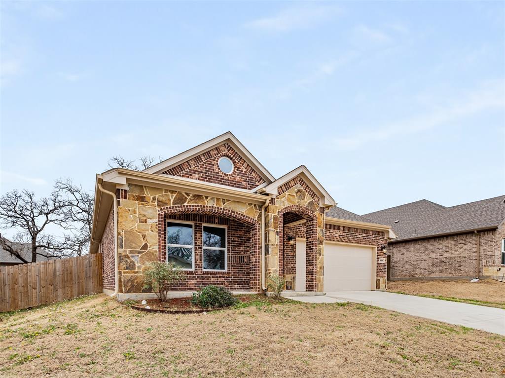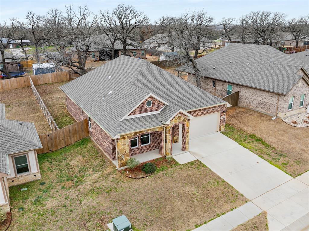 STUNNING CUSTOM BUILT NEW HOME located just minutes to Hwy 199 and downtown Springtown. Enjoy the quiet rural subdivision life with NO HOA that this home has to offer with towering Oaks and just around the corner to a beautiful park perfect for evening walks. This gorgeous home has great curb appeal with a brick and stone front and covered front porch. Inside, find a neutral light color palette with 4 Bedrooms, 2 Baths and 2 Car Garage. The upgraded custom kitchen with bonus upper glass paneled cabinets is a masterpiece with complementary granite counters, walk in pantry and large island. Primary suite with spacious bedroom and en-suite bath featuring separate shower and tub shower combo, dual sinks, ample storage space, and large walk in closet. The backyard is amazing and peaceful with huge oak trees proving shade and a nice covered patio. Full landscaping and irrigation! Beautiful Crown Molding details in all main spaces! FULLY ENCAPSULATED FOAM INSULATION for supreme energy savings! Lower tax rate at 2.06% makes this a perfect place to call home! 3D Tour located in Virtual Tour Link! Check it out!! Builder offering $5000 towards buyer's closing costs!
