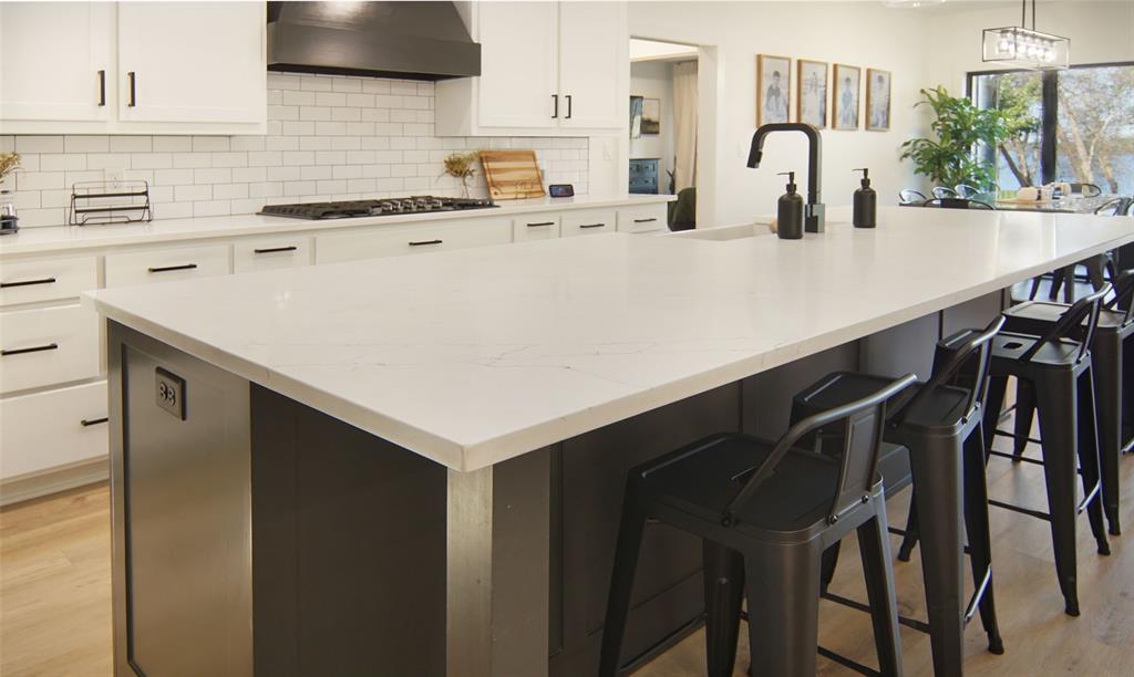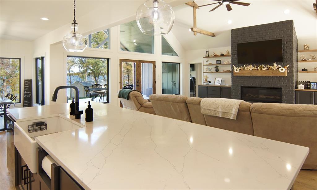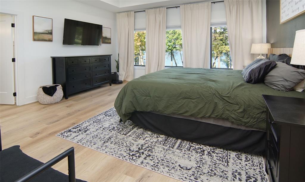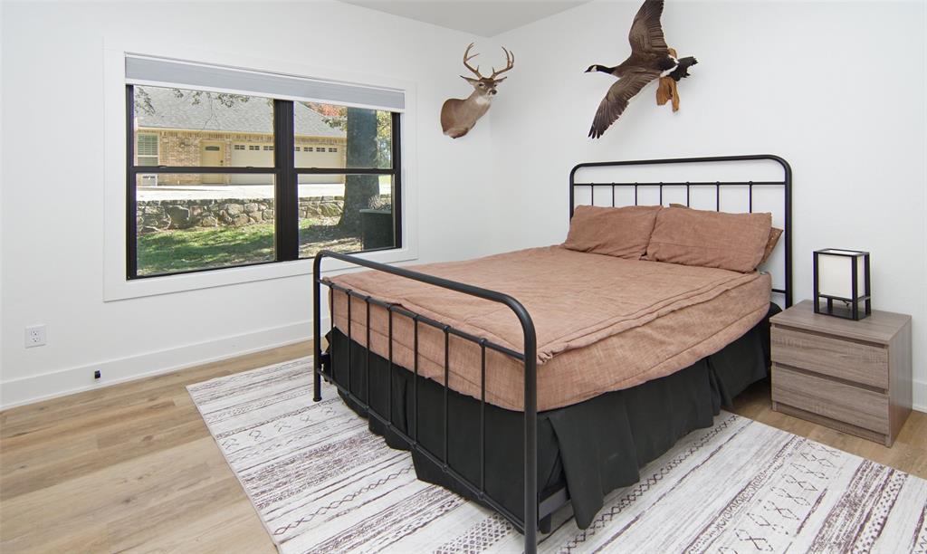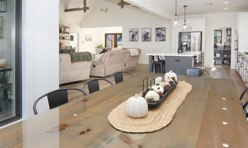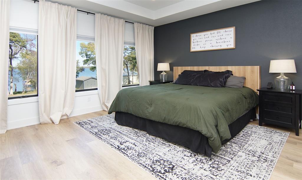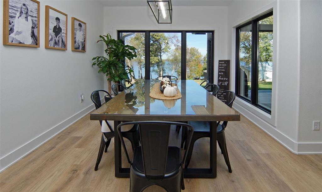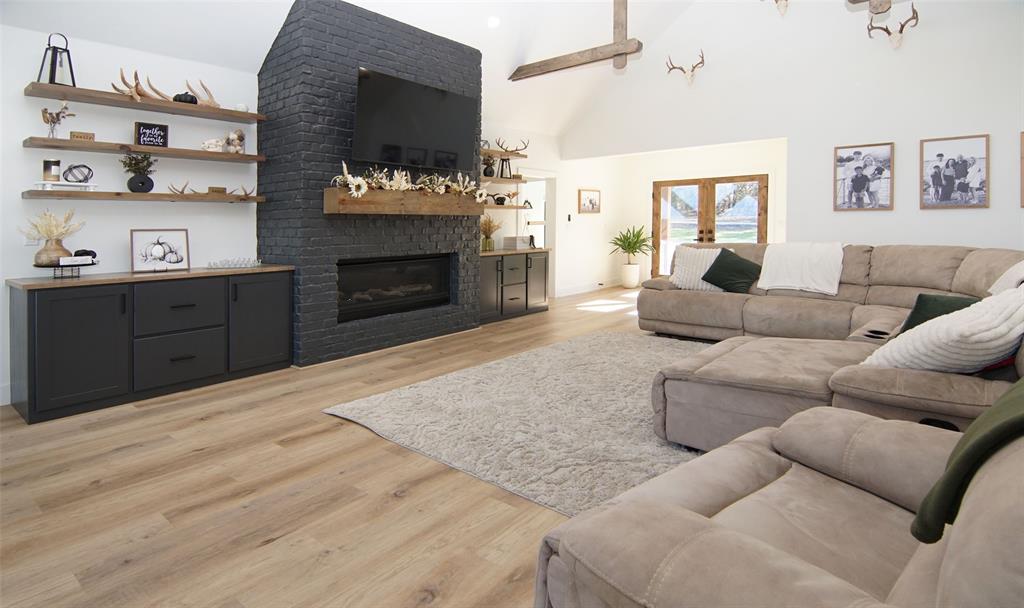 Experience unparalleled lakefront living in this breathtaking custom-built home, completed in 2022, offering unrestricted water views on the renowned Lake Fork. This prime location boasts exceptional water depth, though this home currently features a50-foot pier and retaining wall, you have the freedom to design and build your own boathouse to fit your vision. Step through the elegant double doors into a grand living room with vaulted ceilings, accentuated by wooden beams and a wall of windows that frame the serene lake views. A gas fireplace, flanked by custom wood shelving and storage cabinets, serves as the focal point of this inviting space. The open-concept design connects to the gourmet kitchen, featuring a large island, and an impressive walk-in pantry with wood countertops, perfect for storing and using appliances while keeping countertops clutter-free. A large dining space off the kitchen and living area makes entertaining effortless, while the expansive covered patio provides the perfect setting to make memories with friends! The luxurious master suite is a private retreat, offering breathtaking lake views from both the bedroom and ensuite bath. The spa-like master bath boasts a soaking tub, custom tile shower, and a spacious walk-in closet that conveniently connects to the utility room for effortless organization. This thoughtfully designed home also includes four additional spacious bedrooms, all beautifully styled and large enough to accommodate various furniture arrangements. A dedicated office space at the front of the home provides a quiet area for work or study. The exterior is a perfect blend of painted brick, Hardie siding, and cedar accents, creating timeless curb appeal. Additionally, a 12x16 storage building in the backyard offers ample space for lawn equipment and lake gear. Imagine waking up to panoramic lake views and spending evenings enjoying the tranquil water from your own backyard. This home is truly a dream come true!