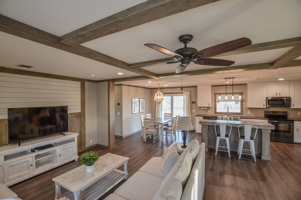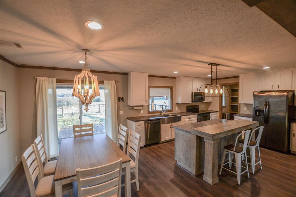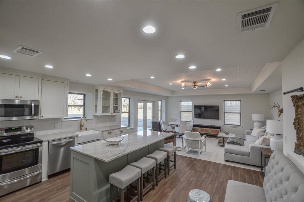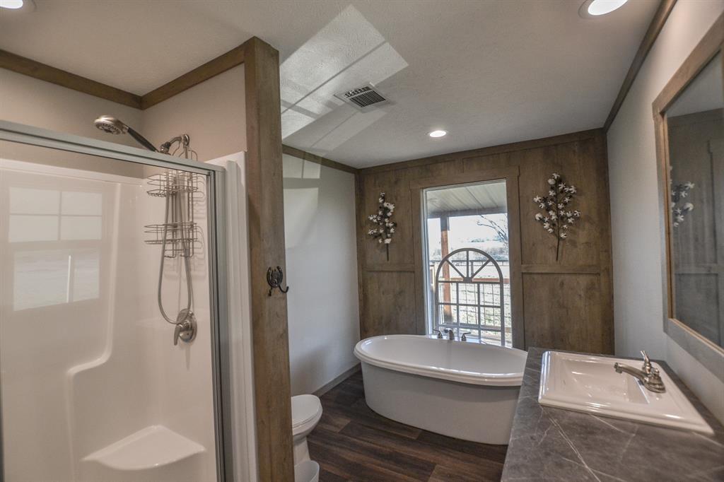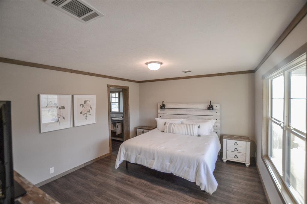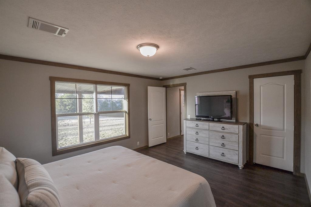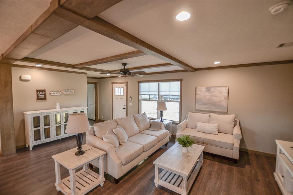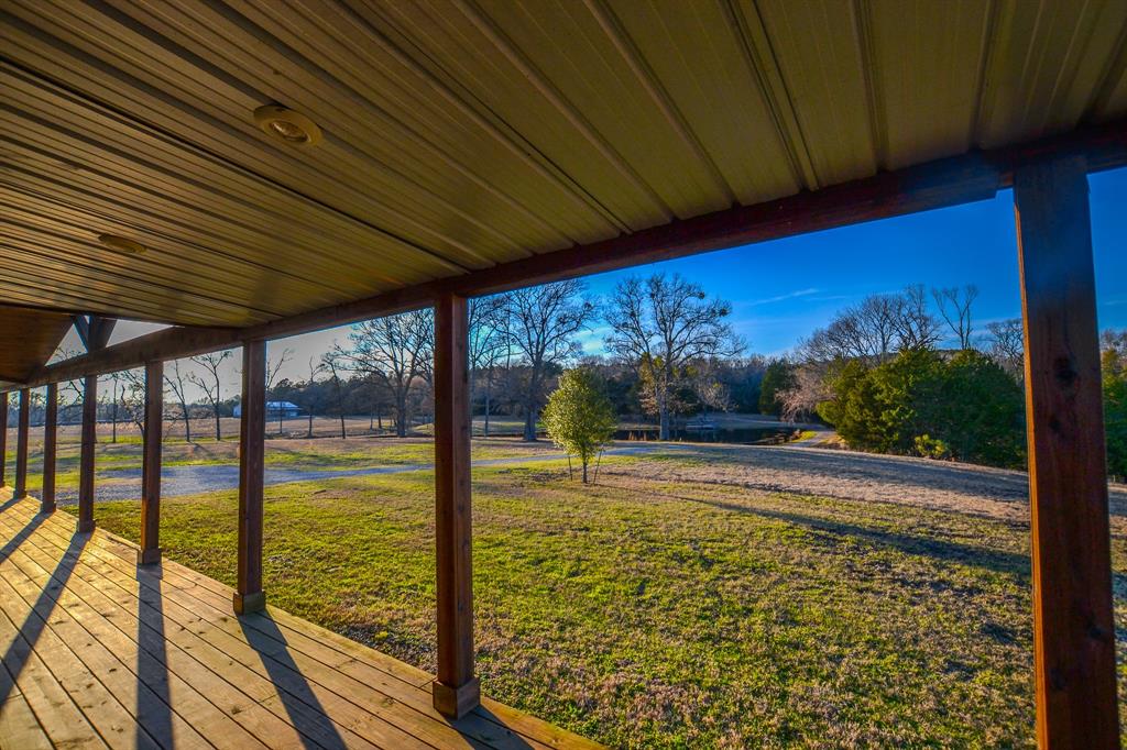 The ranch features a custom-finished 1,200 sq. ft. barndominium with 2 bedrooms, 2 baths, an open-concept living area and kitchen, plus a convenient drive-through garage. A second residence, a 1,456 sq. ft. mobile home, offers 3 bedrooms, 2 baths, an open floor plan, a spacious utility room with a pantry, and covered front and back porches overlooking a fenced backyard.