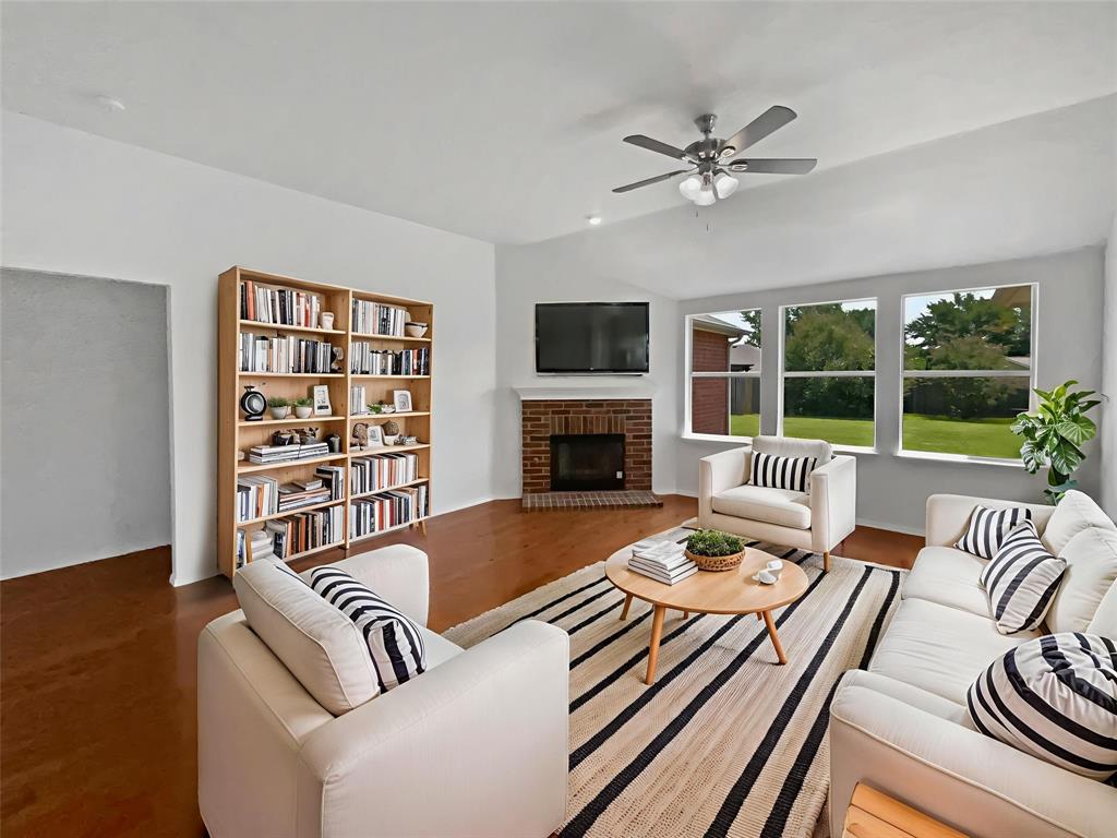 100-Day Home Warranty coverage available at closing.Welcome to this beautifully updated home. The living room boasts a cozy fireplace and a fresh interior paint in a neutral color scheme. The kitchen is a chef's dream with a accent backsplash, and all stainless steel appliances. The primary bathroom features a separate tub and shower for ultimate relaxation. The home also includes a partial flooring replacement for a modern touch. Outside, you'll find a fenced-in backyard with a covered patio and an additional patio, perfect for outdoor entertaining. This home is a must-see! This home has been virtually staged to illustrate its potential.