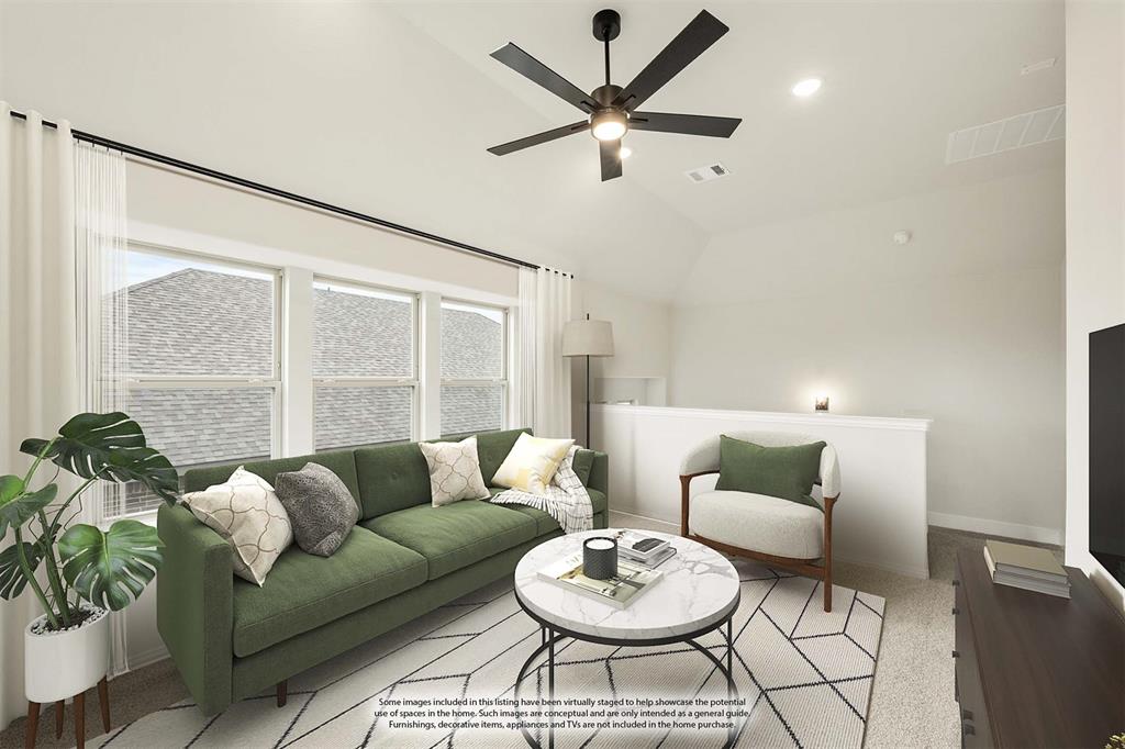*$12K towards Closing Costs!* NEW NEVER LIVED IN! Ready NOW! This luxurious 1.5-story Bloomfield home seamlessly blends craftsmanship and elegance, offering 4 bedrooms and 3 baths on a desirable interior lot with a striking brick and stone facade and black-painted garage and trim that enhances its modern curb appeal. The inviting 8' Custom Rain-Glass Warwick-style front door opens to reveal wood laminate floors, shaker cabinets, and Quartz counters that add sophistication throughout. Expansive windows fill the open-concept living spaces with natural light, highlighting a thoughtfully designed layout that includes a private Study with Glass French doors, a tankless water heater for energy efficiency, and a stylish grey 2x5 picket kitchen backsplash that complements the Gourmet Kitchen's custom cabinetry, SS appliances, gas cooktop, and spacious island perfect for casual seating. A walk-in pantry, large closets, and a buffet at the Breakfast Nook enhance daily functionality, while exterior lighting and an East-facing rear-covered patio provide the perfect outdoor retreat. Upstairs, a versatile Game Room, private bedroom, and full bath offer an ideal guest sanctuary. Residents also enjoy community amenities like a playground and pool. Discover this exceptional home in Arcadia Trails today!