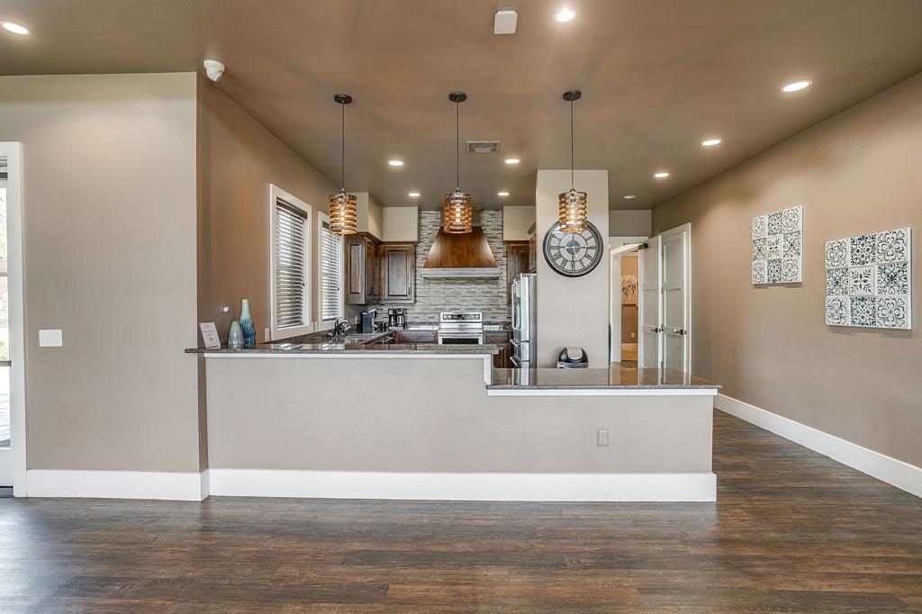Step inside to an open-concept floor plan featuring vaulted ceilings, a charming decorative fireplace, and engineered hardwood flooring throughout most of the common areas. The stunning kitchen boasts a large island, granite countertops, ample cabinetry, gas stove, stainless steel appliances, and a walk-in pantry—perfect for cooking and entertaining.