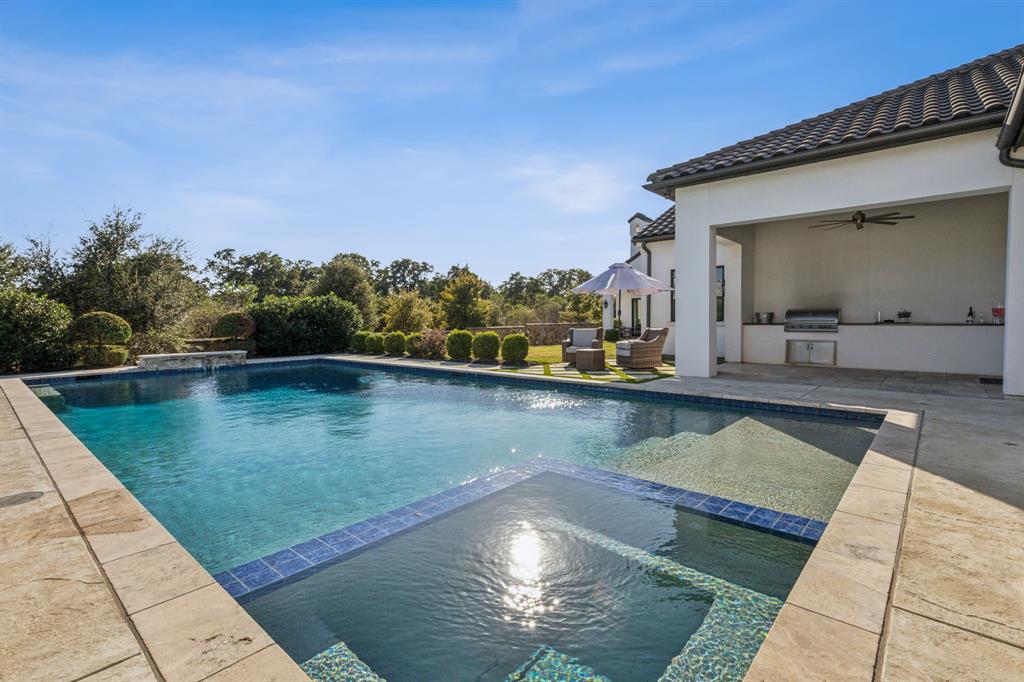 Nestled in Westlake’s prestigious guard-gated community Granada, 2001 Cordoba Cove offers the perfect blend of sophistication, comfort & privacy. With a prime North-facing location, this estate spans a total of 6,190 sqft, including a very hard to find & impressive 831 sqft detached Casita w living area, kitchenette, bedroom, bathroom & walk-in closet w washer & dryer-a perfect space for guests or extended family. Inside you'll be welcomed by an expansive open floorplan flooded w natural light that accentuates the refined craftsmanship & attention to detail throughout. Featuring 6 spacious bedrooms all w ensuite baths, plus 2 half baths, every corner of this estate was designed with spaciousness & luxuriousness in mind. The gourmet kitchen is a chef’s dream, equipped w top-of-the-line SubZero & Wolf appliances, a Built-in Miele coffee system, a stunning handmade Vogle range hood & an oversized Calacatta Borghini island that’s perfect for culinary creativity. The seamless flow continues into the formal dining room & living areas making it ideal for entertaining & enhanced by custom Cabrera Iron doors which allow spectacular views to the backyard. For movie nights & gatherings, the media room offers a cinematic experience that will impress every guest. Step outside to your own private oasis & resort-style 42,000 gallon 9ft deep pool & spa, surrounded by lush landscaping & multiple lounging areas. The covered patio, complete w a built-in grill, provides an ideal space for outdoor dining & year-round entertainment. For additional storage or customization, there is also a walk-in attic space offering endless possibilities for expansion-whether you need more living space, a playroom or exercise or craft room, the options are limitless. Zoned to Southlake Carroll ISD or Westlake Academy, a buyer will have access to some of the best education in the state. Privacy, luxury & convenience await you in this stunning property.
