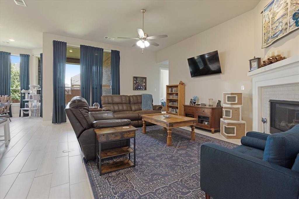 Please see private remarks. Welcome to this stunning 4-bedroom, 3-bathroom award-winning Highland home in the beautiful Sandbrock Ranch community. Designed with an open-concept layout, this home boasts a spacious master suite featuring a large walk-in closet, dual sinks, a separate shower, and a walk-in tub for ultimate relaxation. The split-bedroom layout provides added privacy, while the gourmet kitchen offers an oversized island and abundant cabinet space, perfect for family gatherings or entertaining guests. Cozy up by the gas fireplace in the inviting living room or enjoy evenings on the patio under the built-in misters, fan, and television. Centrally located for work and play, this classic Sandbrock home offers modern luxury amenities in a family-friendly community.