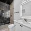 Inside, enjoy soaring 10’ ceilings, solid-core 8’ doors, 4x4 porcelain tiles, electric fireplaces, and designer ceiling trays with ambient lighting. The chef’s kitchen is fully equipped with quartz countertops, a waterfall island, KitchenAid appliances, pot filler, RO system, and custom cabinetry. Both primary suites boast spa-like baths with freestanding tubs, raindrop showers, and premium finishes.