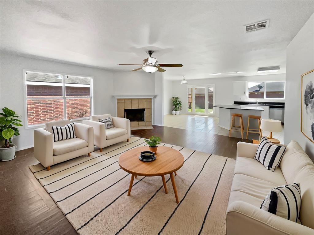 Welcome to this lovely property, boasting a neutral color paint scheme and fresh interior paint that provides a calming ambiance. The living area features a cozy fireplace and leads to a kitchen equipped with all stainless steel appliances. The kitchen also showcases a center island, perfect for meal preps. The primary bathroom is a haven with its separate tub and shower. The exterior of the property is just as impressive, with a covered patio overlooking a fenced-in backyard, ideal for outdoor relaxation. With partial flooring replacement, this property is ready for its new owner. Don't miss out on this unique opportunity. This home has been virtually staged to illustrate its potential.
