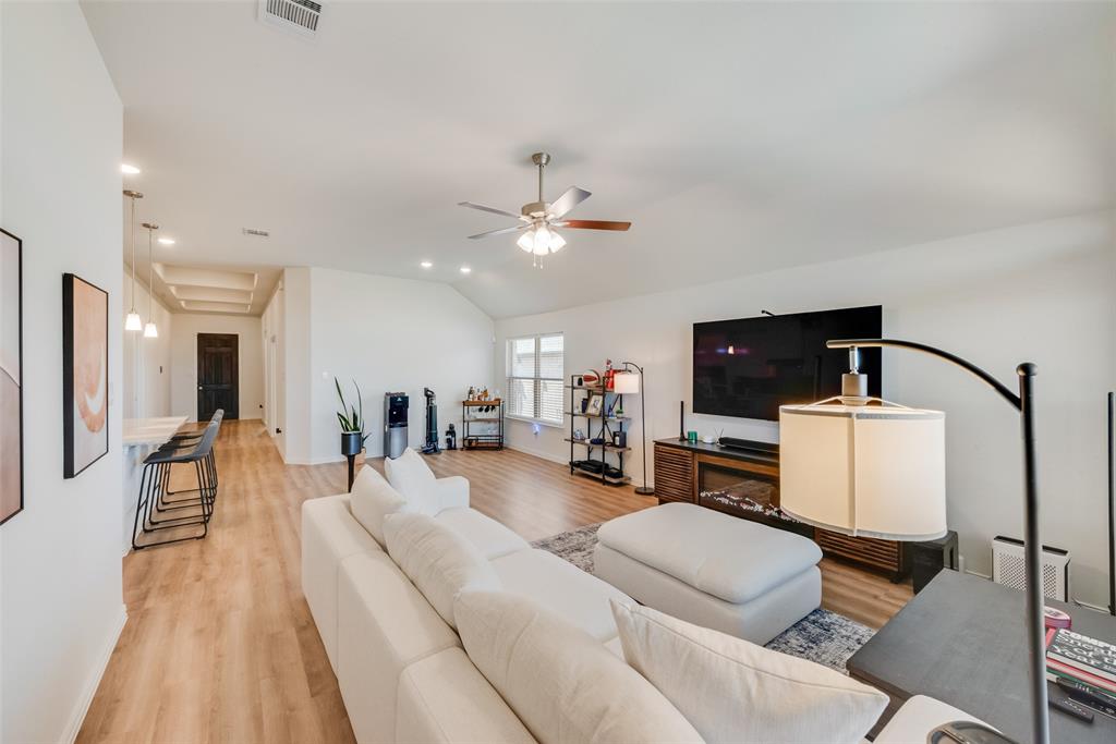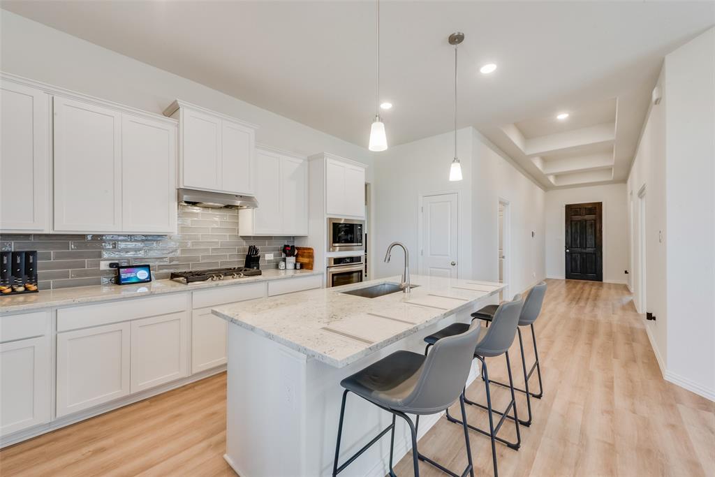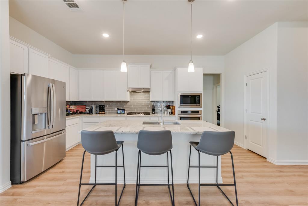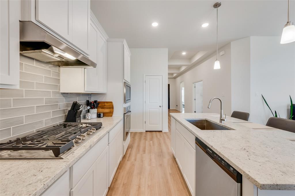 This spacious home offers 4 bedrooms, 3 full baths, and a dedicated office within 2,170 sq. ft. of thoughtfully designed living space. The open-concept kitchen features a gas cooktop, walk-in pantry, and large island, seamlessly connecting to the dining area, great room, and covered patio, making it ideal for entertaining. The owner’s suite provides a private retreat with a soaking tub, separate shower, and walk-in closet, while the remaining bedrooms are strategically placed for privacy. Located in the Woodstone community, this home offers access to a community pool and walking trails, all within the peaceful surroundings of northern DFW. Zoned to the highly rated Aubrey ISD, this home blends modern comfort with small-town charm while maintaining easy access to big-city amenities.