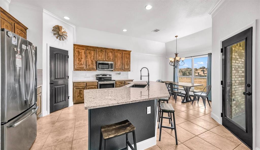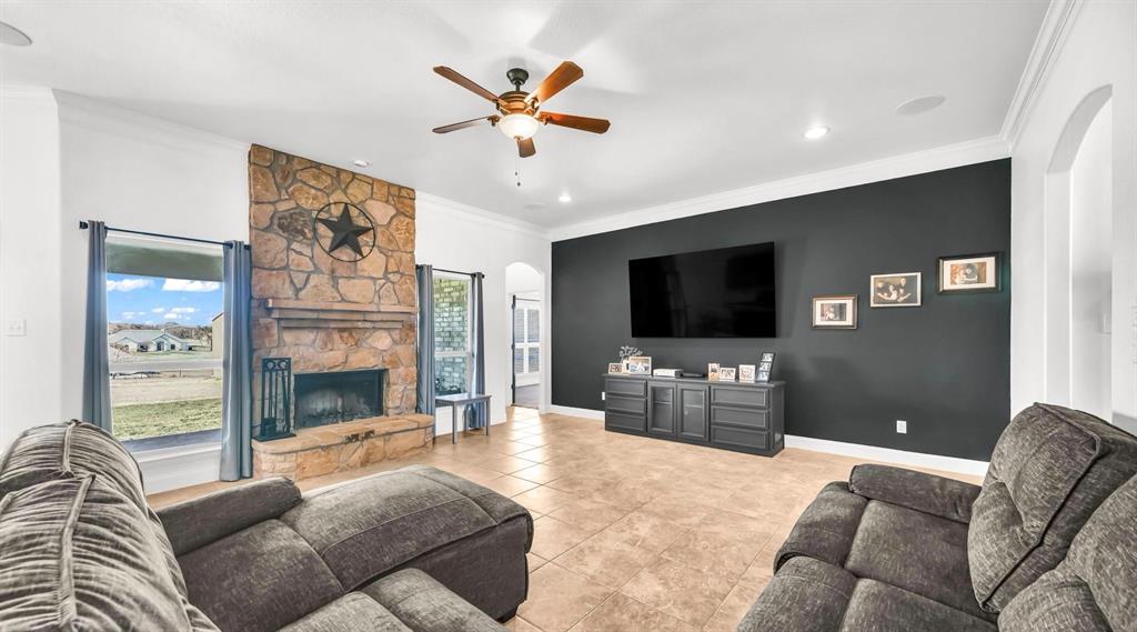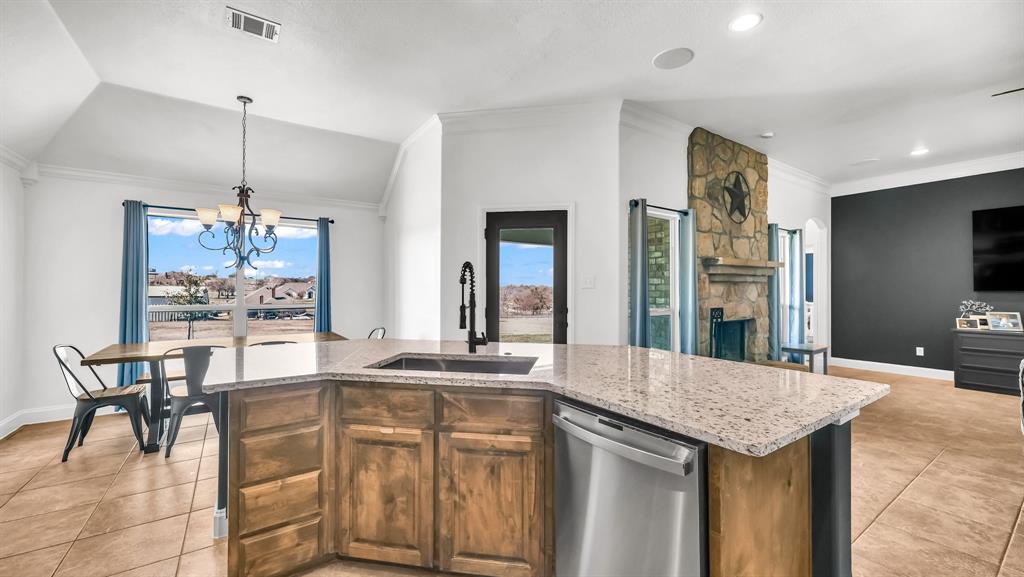 This 2000+sqft stone-brick home is outside city limits yet mins to creature comforts of Azle & Wford. An inviting entry leads to an oversized living room with wood burning, floor to ceiling stone fireplace. Your open concept kitchen has a 180-degree eat at bar, corner pantry & adjoining dining room basking in natural light from a 1+ac backyard. 4 bedrooms 2 full baths & large laundry room make for an ideal home for your family. The laundry has built in cabinetry, drying rod & abundant room for a mud bench & family storage.