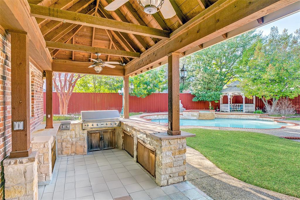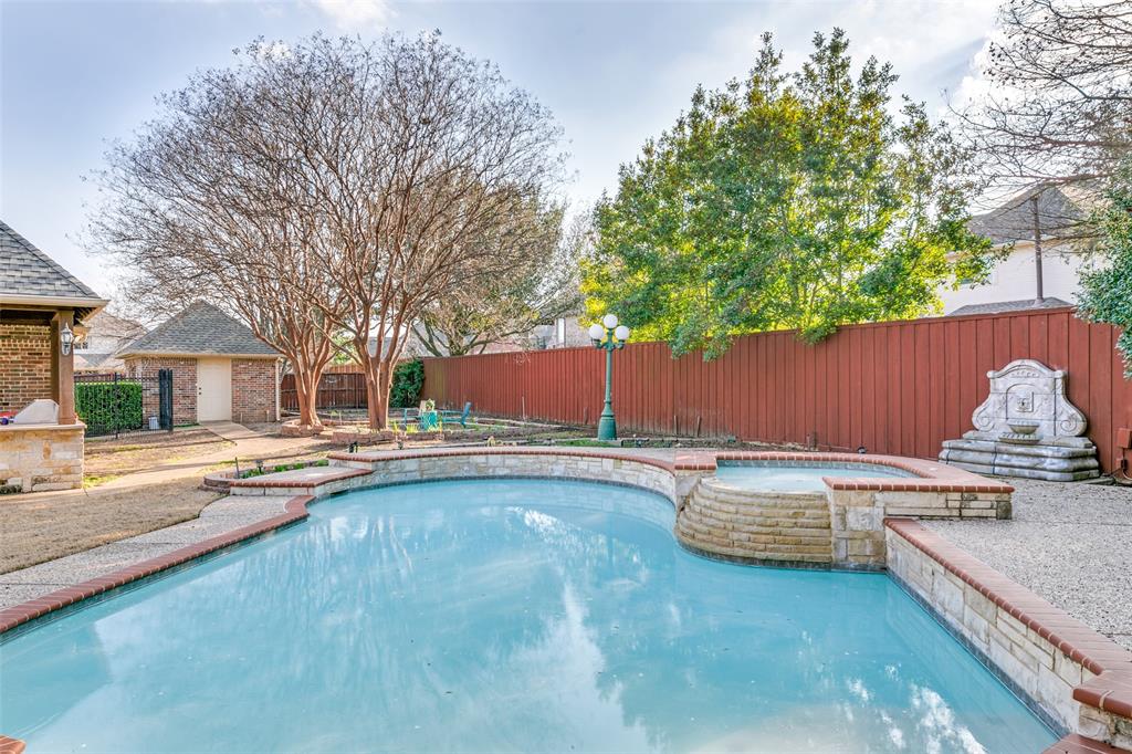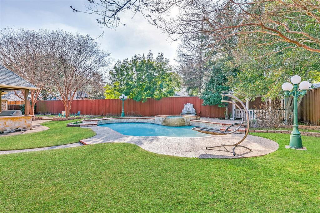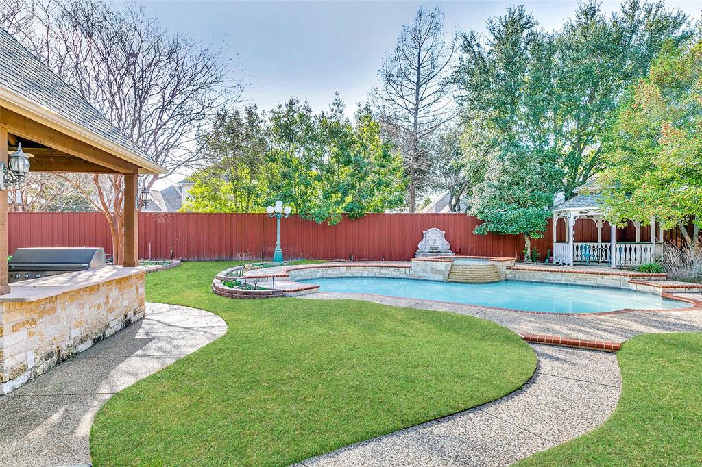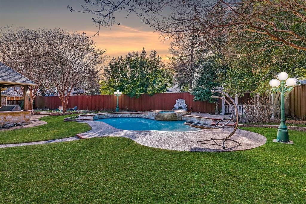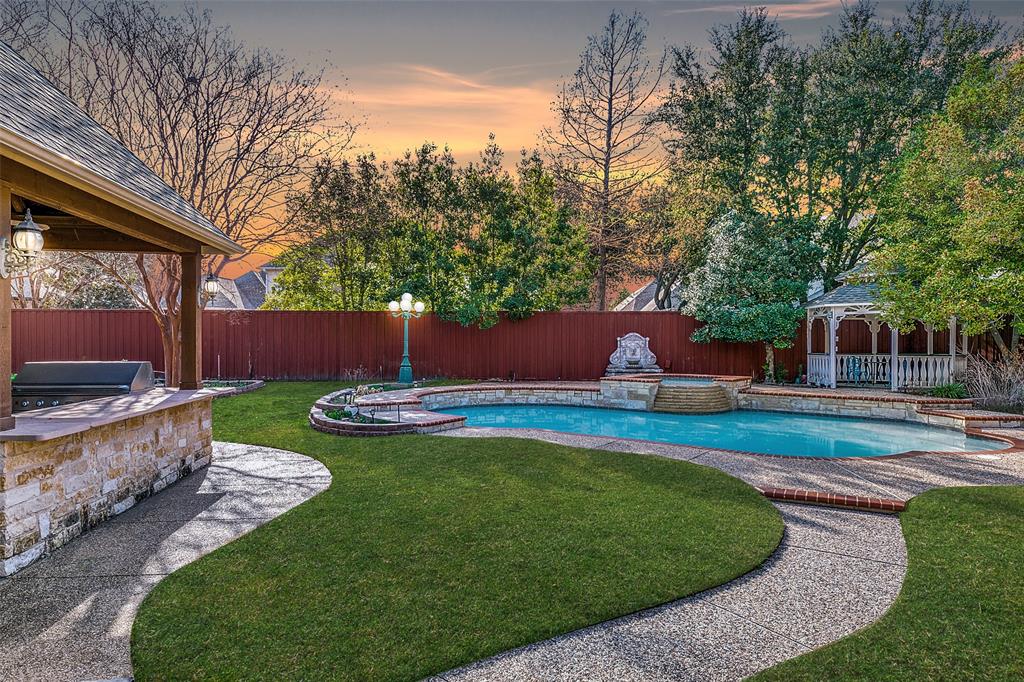 Welcome to your OWN PRIVATE ESTATE, a traditional, stately, and exceptionally well-built custom home nestled in the exclusive, gated community of The Retreat at Firewheel. Located on one of the largest and most beautifully landscaped lots in the neighborhood, this .42-acre sanctuary delivers both refined elegance and summer-ready fun — all within a top-rated GISD school zone. From the moment you arrive, the grand circular driveway and classic architectural presence set the tone. Step inside to discover a timeless design that blends sophistication with comfort. The spacious layout offers room for entertaining and relaxing, including a chef’s kitchen, open-concept family room, a sun-drenched sunroom, and a private home office that can easily convert to a guest suite. Each upstairs bedroom is a private retreat with its own ensuite bath and walk-in closet. The expansive game room is ideal for movie nights, slumber parties, or weekend gatherings. Meanwhile, the luxurious primary suite feels like your own getaway, overlooking the pool featuring a spa-like bath walk in shower, soaking tub, and a walk-in closet large enough to impress any wardrobe. Outside, your resort-style backyard oasis awaits. Lounge by the sparkling pool, soak in the bubbling hot tub, or host summer barbecues at the fully outdoor kitchen and grill. Relax under the breezy gazebo, surrounded by two tranquil fountains, lush mature trees, and a secluded garden for fresh herbs. There's even a separate storage building to house all your outdoor essentials. Car enthusiasts and hobbyists will love the oversized 3-car garage, complete with a climate-controlled workshop and over 70 feet of custom cabinetry — ideal for projects, tools, or creative endeavors. With direct access to Firewheel Golf Course, walking trails, the community pond, and clubhouse — plus quick to 190, CityLine, Downtown Dallas, and shopping and dining — this estate delivers both lifestyle and location. Motivated Sellers! Come make and OFFER!