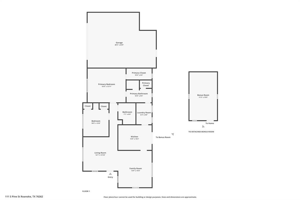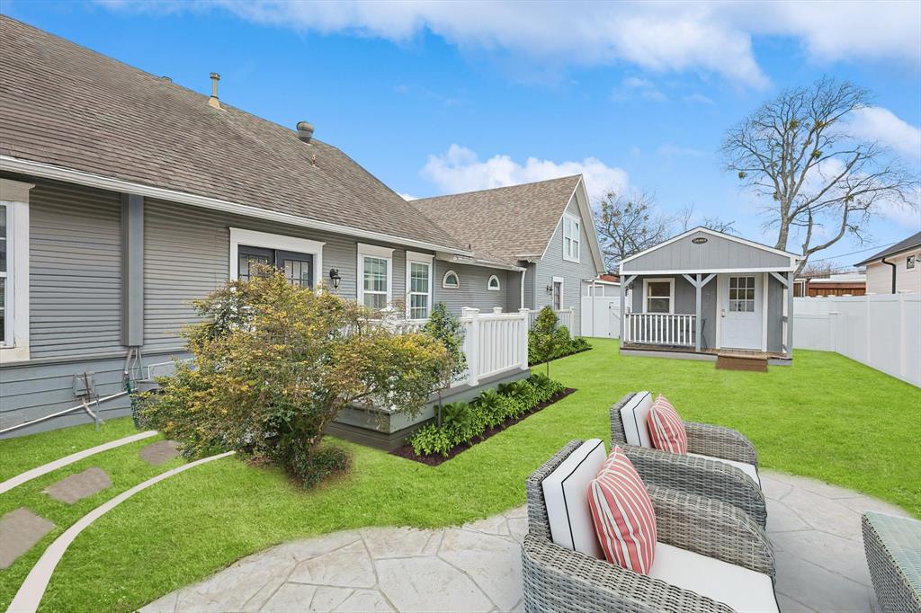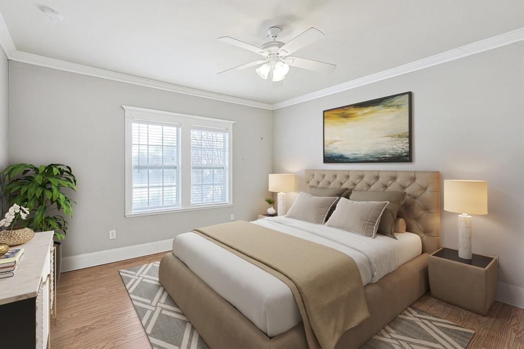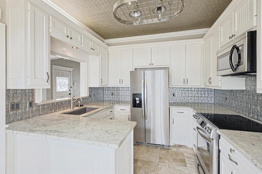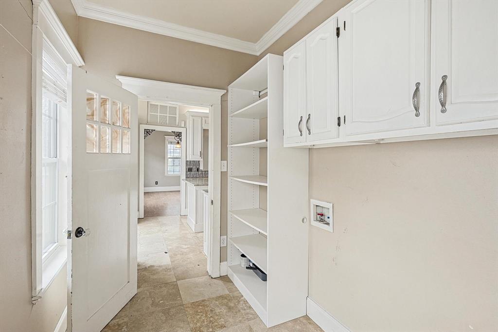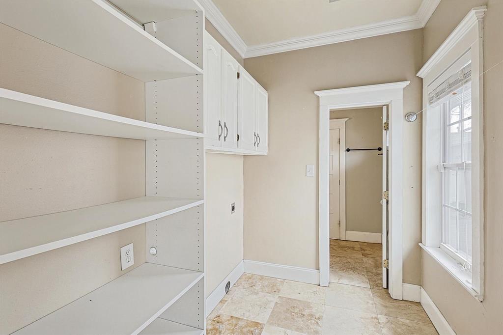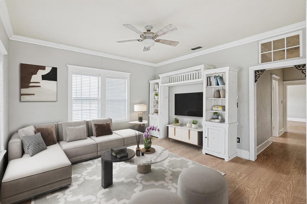 Buyer's financing fell through! Built by Byron Nelson, this exceptional home is nestled on a corner lot just one block from Oak Street in historic downtown Roanoke, seamlessly combining modern amenities with a touch of historical charm. The residence features 2 bedrooms and 2 bathrooms, ensuring ample space and privacy. The interior showcases laminate hardwood and travertine flooring throughout, complemented by 6-inch baseboards and elegant crown molding. The heart of the home is the kitchen, equipped with SS appliances, granite countertops, and storage built-ins. The primary suite includes an ensuite bath featuring a walk-in shower, and the secondary bath is adorned with a clawfoot tub. Additional features include a 600 sq. ft. space above the detached garage, offering tremendous income potential and versatility as a second primary suite, an office, or an efficiency unit. This area is fully decked and ready for drywall. The oversized two-car garage includes a 15 x 7 extra area with a door leading to the backyard and patio, perfect for additional storage needs. The backyard features a 19x11 storage building and is enhanced with a mini-split system and insulation. Located in a mixed-use area, this property perfectly blends residential comfort with commercial potential!