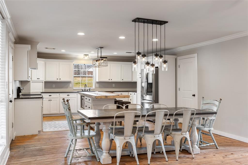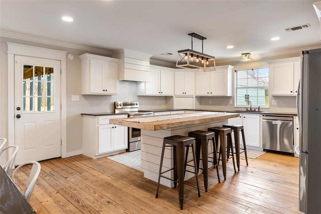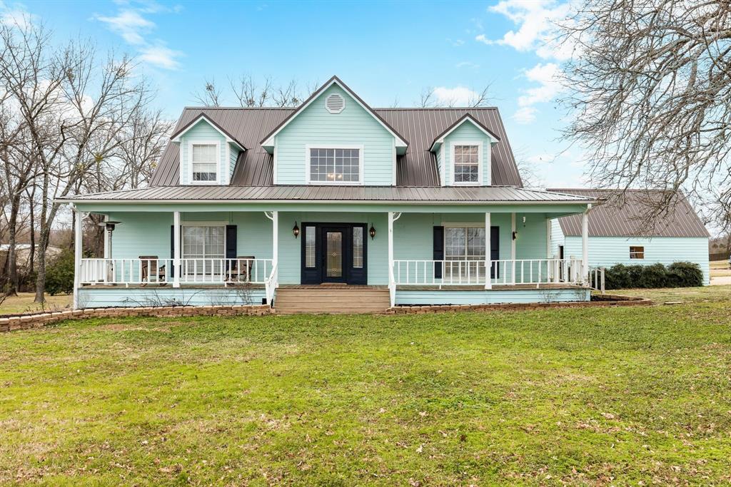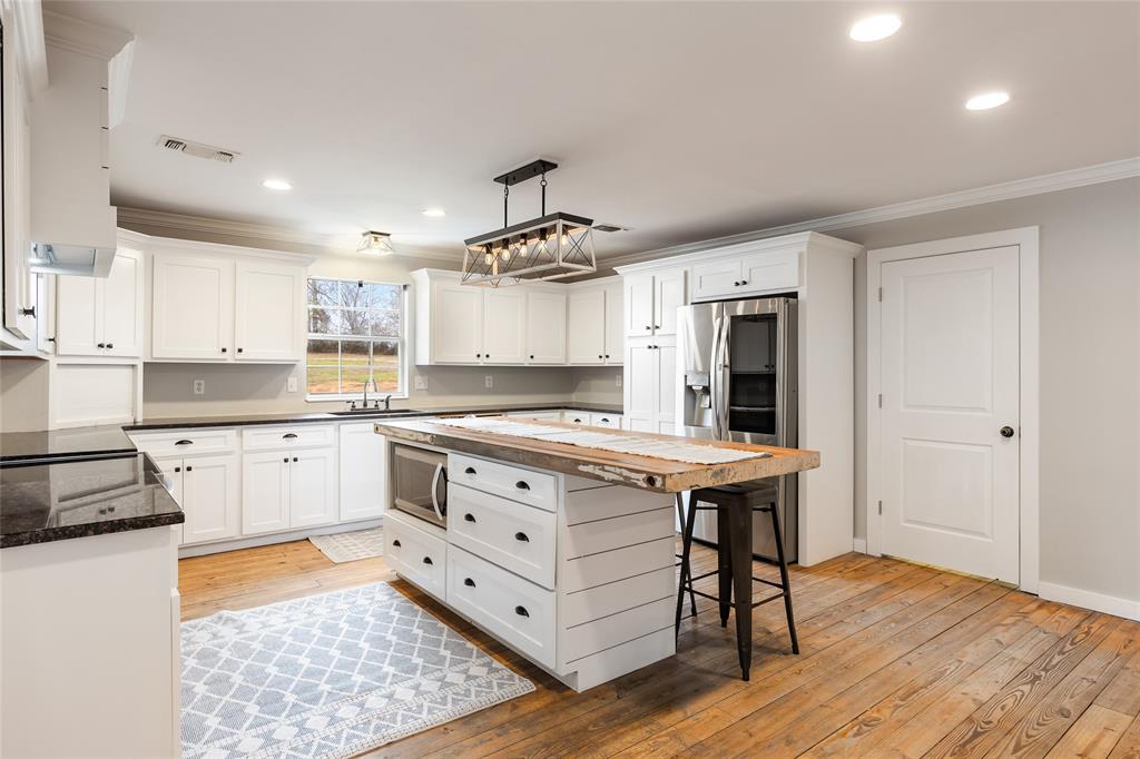 This home is as charming inside as it is outside, blending character with modern updates. Oversized windows flood the open-concept living space with natural light. The farmhouse kitchen is completely remodeled, featuring brand-new custom cabinets, granite countertops, a butcher block island, and all-new appliances. A spacious walk-in pantry, complete with a second sink and coffee bar, has room for an extra fridge and freezer. The downstairs primary suite includes a conveniently connected laundry room and extra closet space. There is a 2nd laundry hook-up in the pantry as well. Across the hall, a half bath and an additional bedroom could also make a perfect office. Upstairs, a fun loft—currently a game and lounge area—connects two bedrooms, each with its own bathroom. Outside, five acres offer plenty of space to roam, with a pond at the back of the property. The 30x30 metal shop on a concrete slab is perfect for hobbies. Just outside city limits, this home is less than a mile from I-30 and under 10 minutes from Celebration Plaza downtown Sulphur Springs, schools, shopping, and the best dining around.
