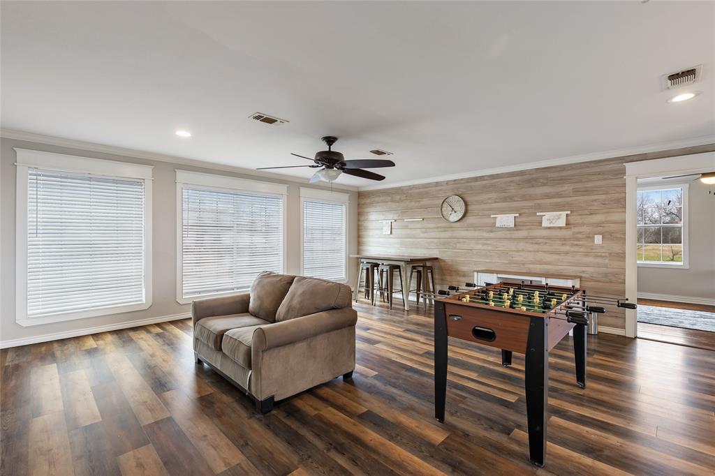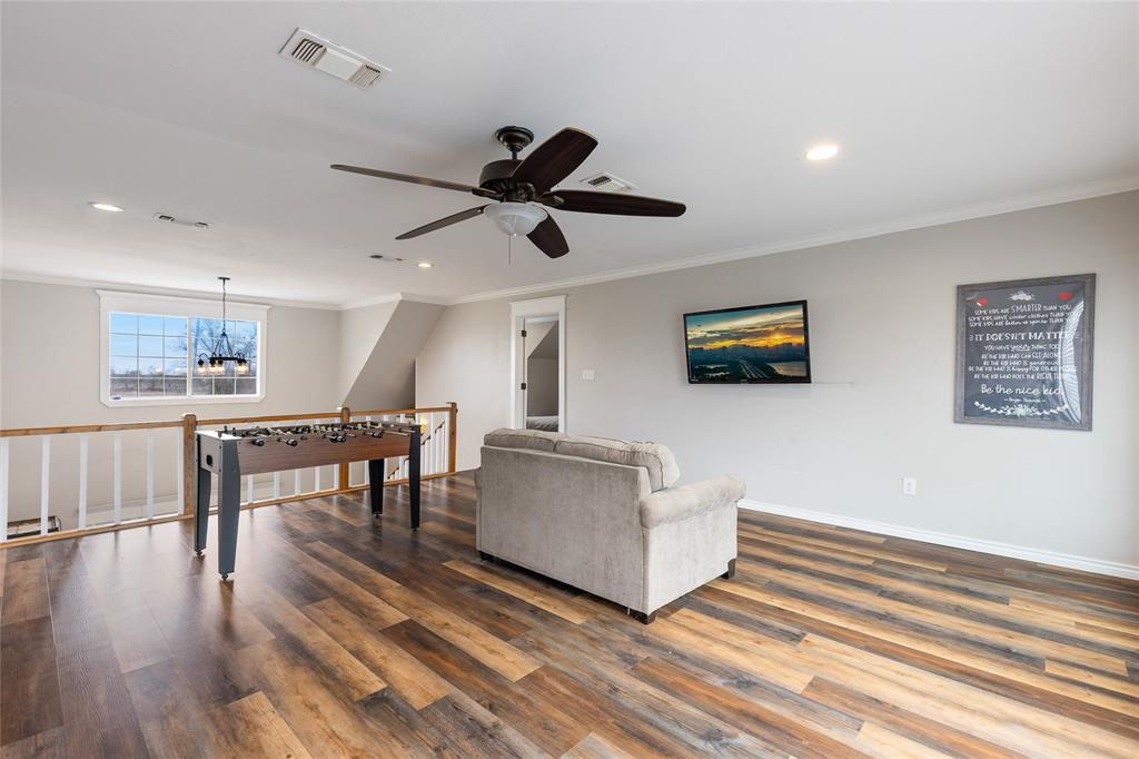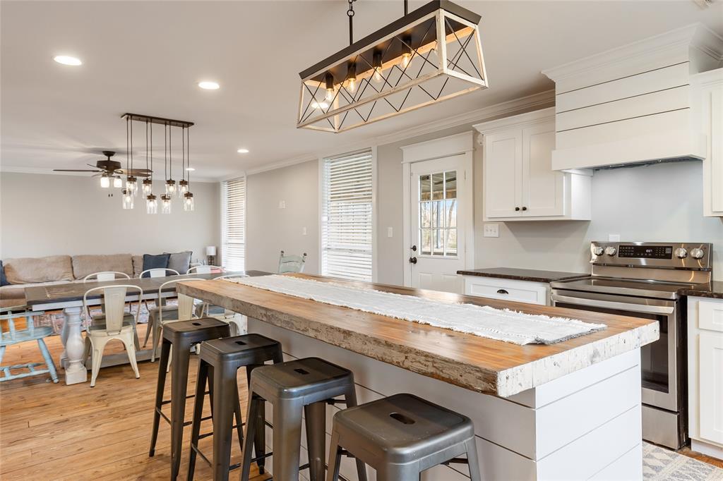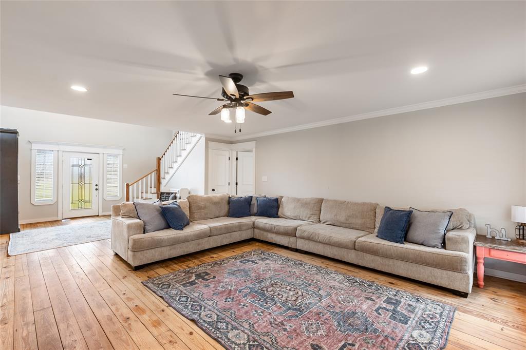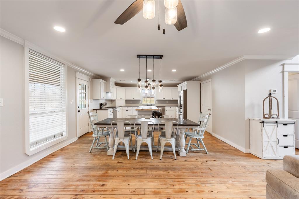 This home is as charming inside as it is outside, blending character with modern updates. Oversized windows flood the open-concept living space with natural light. The farmhouse kitchen is completely remodeled, featuring brand-new custom cabinets, granite countertops, a butcher block island, and all-new appliances. A spacious walk-in pantry, complete with a second sink and coffee bar, has room for an extra fridge and freezer. The downstairs primary suite includes a conveniently connected laundry room and extra closet space. There is a 2nd laundry hook-up in the pantry as well. Across the hall, a half bath and an additional bedroom could also make a perfect office. Upstairs, a fun loft—currently a game and lounge area—connects two bedrooms, each with its own bathroom. Outside, five acres offer plenty of space to roam, with a pond at the back of the property. The 30x30 metal shop on a concrete slab is perfect for hobbies. Just outside city limits, this home is less than a mile from I-30 and under 10 minutes from Celebration Plaza downtown Sulphur Springs, schools, shopping, and the best dining around.