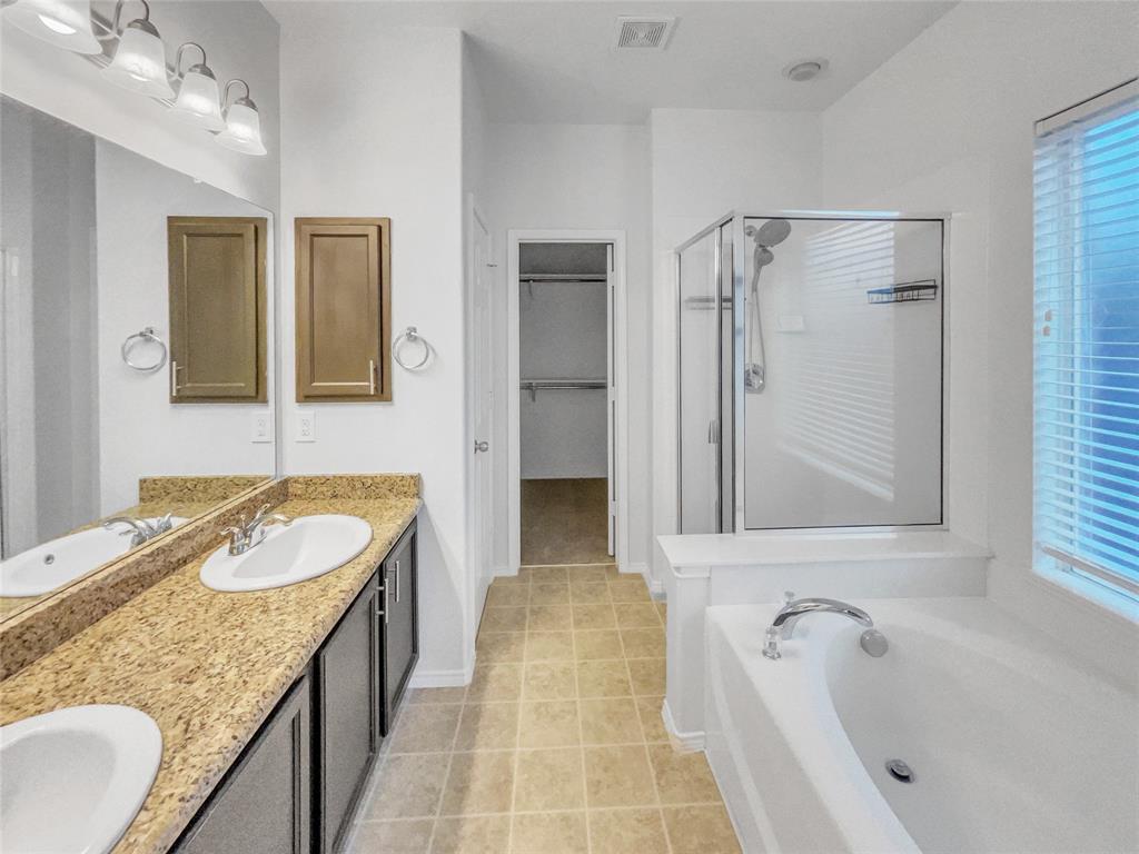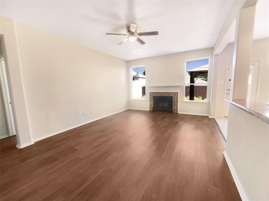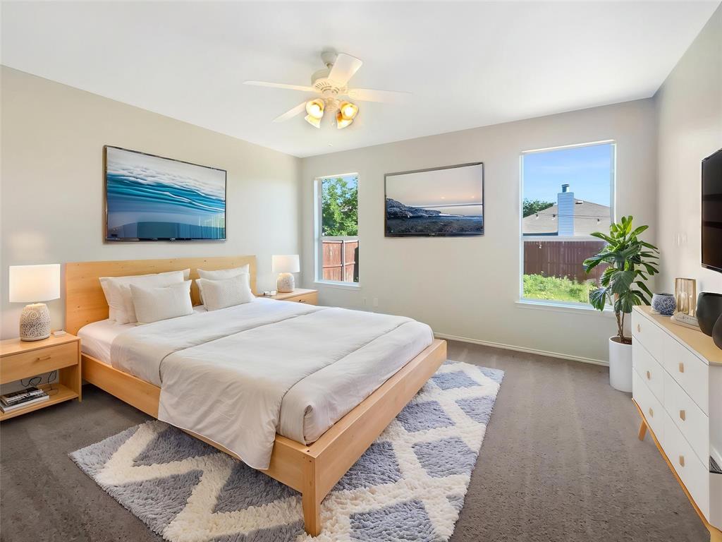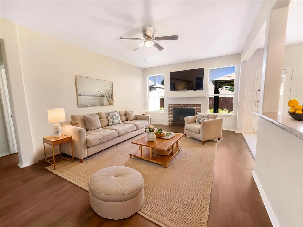 Welcome to this charming home boasting a warm fireplace, a calming natural color palette, and a stylish backsplash in the kitchen. The primary bedroom features a walk-in closet for ample storage, while the primary bathroom offers a separate tub and shower, double sinks, and good under sink storage. Step outside to the fenced backyard with a covered sitting area, perfect for outdoor relaxation. Updates include fresh interior paint and partial flooring replacement in some areas. Don't miss out on this fantastic opportunity to make this house your home.