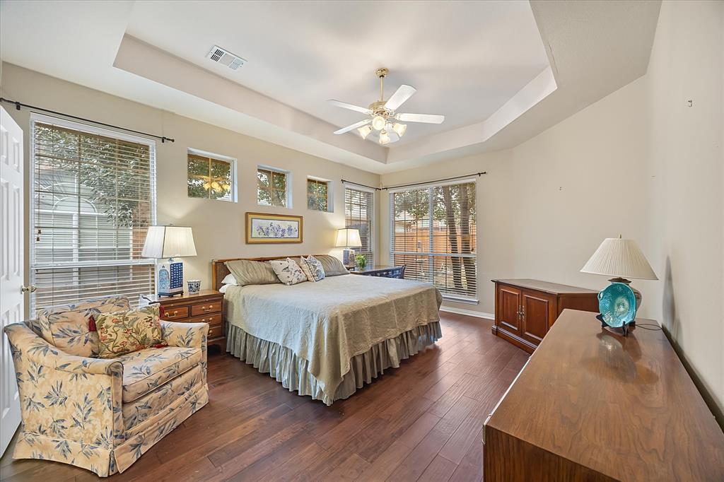 Move in Ready! Discover a stunning 4 bedroom, stone & brick home nestled in a prestigious gated neighborhood offering resort-style amenities—including a clubhouse, tennis & pickleball courts, & a sparkling swimming pool—all just moments from Lake Ray Hubbard, top-rated schools, shopping, & entertainment. Designed for both gracious entertaining & everyday comfort, this home boasts a thoughtfully designed floor plan. Grand entry with impressive staircase opens onto stunning living area. The beautifully appointed dining room features a butler’s pantry connecting to the chef’s dream kitchen, complete with ample cabinetry, built-in appliances, a roomy pantry, & a spacious breakfast bar. The open-concept family room stuns with soaring ceilings, an elegant fireplace, & a wall of windows, flooding the space with natural light. The expansive primary suite offers a spa-like bath and separate his-&-hers closets. Upstairs features three additional bedrooms with generous closets, one currently being used as a home office, and a versatile 2nd living area perfect for a playroom or media room. A loft-style landing with built-ins, is ideal for a library or cozy lounge area. Step outside to a beautifully landscaped, fenced backyard with zoysia grass, perfect for outdoor entertaining with its spacious patio. Situated on a quiet cul-de-sac lot, this home also offers ample guest parking. Lovingly maintained & move-in ready, this exceptional home is waiting for its next owner. Don’t miss your chance—schedule a private tour today!