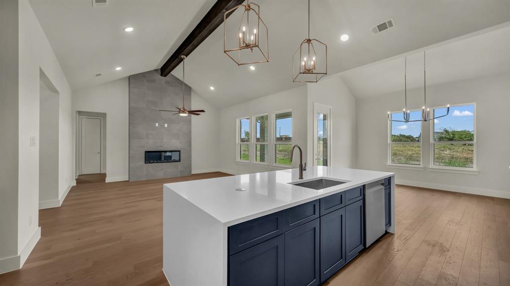 Introducing The Vista Plan, a beautifully designed home featuring 4 bedrooms, 2.5 bathrooms, 2 living areas, and a dedicated study—crafted for both comfort and functionality. Step into the inviting foyer, leading to an expansive great room where a floor-to-ceiling fireplace creates a warm and welcoming ambiance. The open-concept design flows seamlessly into the gourmet kitchen, boasting waterfall quartz countertops, built-in Samsung appliances, soft-close cabinetry, and a walk-in pantry—truly the heart of the home. In addition to the main living space, The Vista Plan offers a versatile second living area, perfect as a cozy family room, media space, or game room to suit your lifestyle. Need a quiet retreat for work or study? The private home office provides a functional and stylish space for productivity. The luxurious primary suite is a sanctuary of its own, featuring an oversized shower, separate soaking tub, and a MASSIVE walk-in closet with convenient access to the laundry room. Thoughtfully designed with both elegance and practicality in mind, this home is a true retreat from the hustle and bustle of city life.