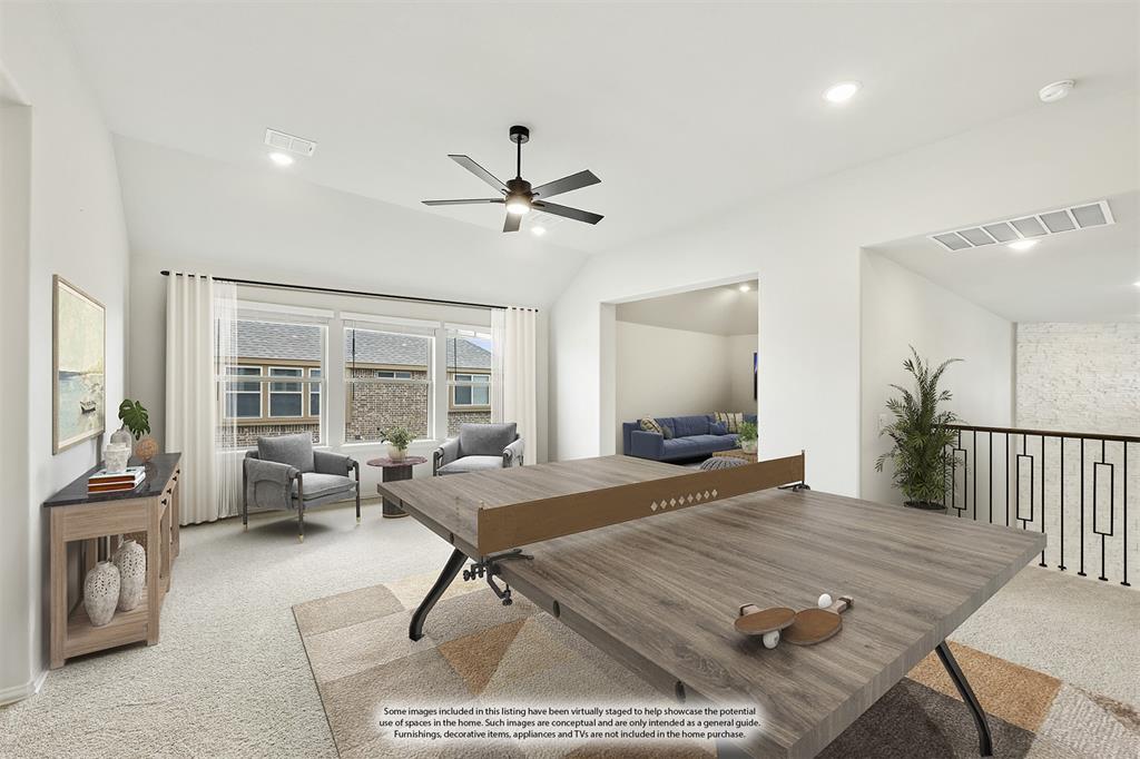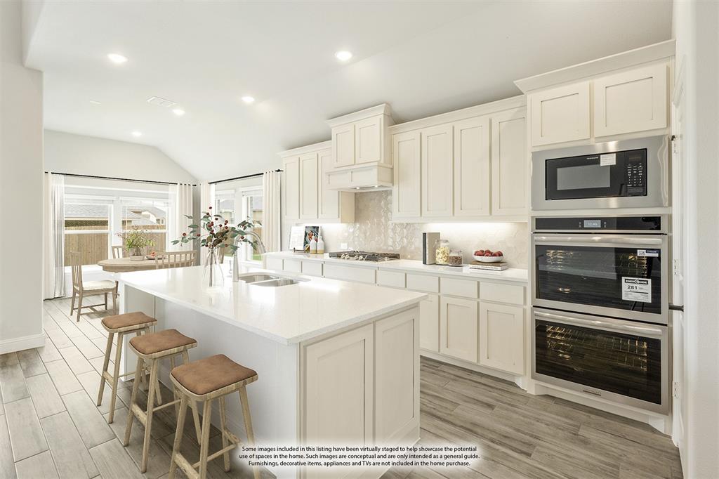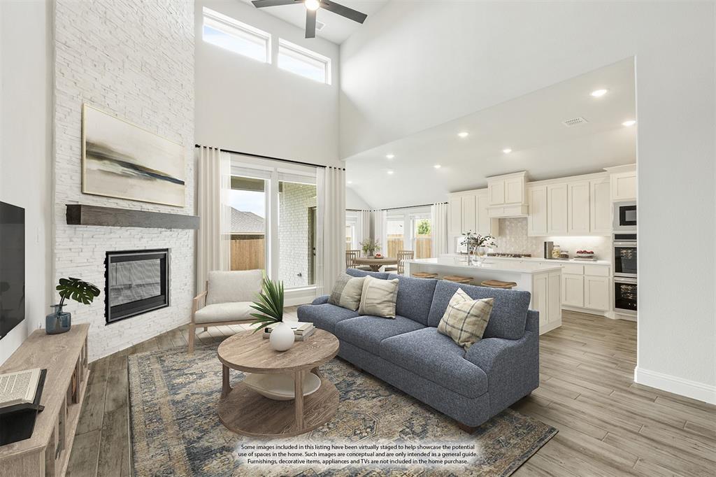 *Contact Community Manager for incentives!* NEW! NEVER LIVED IN. Ready NOW. Open-concept living seamlessly blends with sophisticated design in this impressive home, set on an oversized interior lot with a striking brick and stone facade and uplights that enhance its curb appeal. Featuring five bedrooms, four full bathrooms, and a grand two-story Family Room with dramatic vaulted ceilings and a breathtaking Ledgestone fireplace stretching to the top, this home exudes elegance and warmth. Abundant natural light fills the space, complementing the upgraded flooring, including durable Wood-look Tile in high-traffic areas. The first-floor Primary Suite offers a tranquil retreat with a garden tub, separate shower, and a generously sized walk-in closet with secondary access to the laundry room. The Deluxe Gourmet Kitchen is a chef’s dream, boasting custom cabinets, sleek Quartz countertops, pot and pan drawers, a wood vent hood, top-of-the-line stainless steel appliances, and a coveted Double Oven for added convenience. A mud room enhances functionality, while the second floor offers a spacious Game Room and an adjoining Media Room, perfect for entertainment. Enjoy outdoor living on the Covered Patio, complete with a gas drop for grilling, while a tankless water heater ensures modern efficiency throughout. Contact or visit Bloomfield at Homestead at Daniel Farms today to experience this extraordinary home!