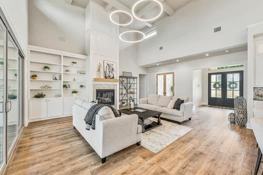 Step into an expansive open-concept layout with soaring ceilings and abundant natural light. The gourmet kitchen is the centerpiece of the home, boasting a grand island perfect for entertaining, meal prep, and casual dining.