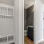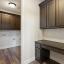 Functional luxury: Custom built-in cabinetry with an integrated desk in the laundry room, extra storage near the utility area, and a stylish hall tree by the garage entrance.