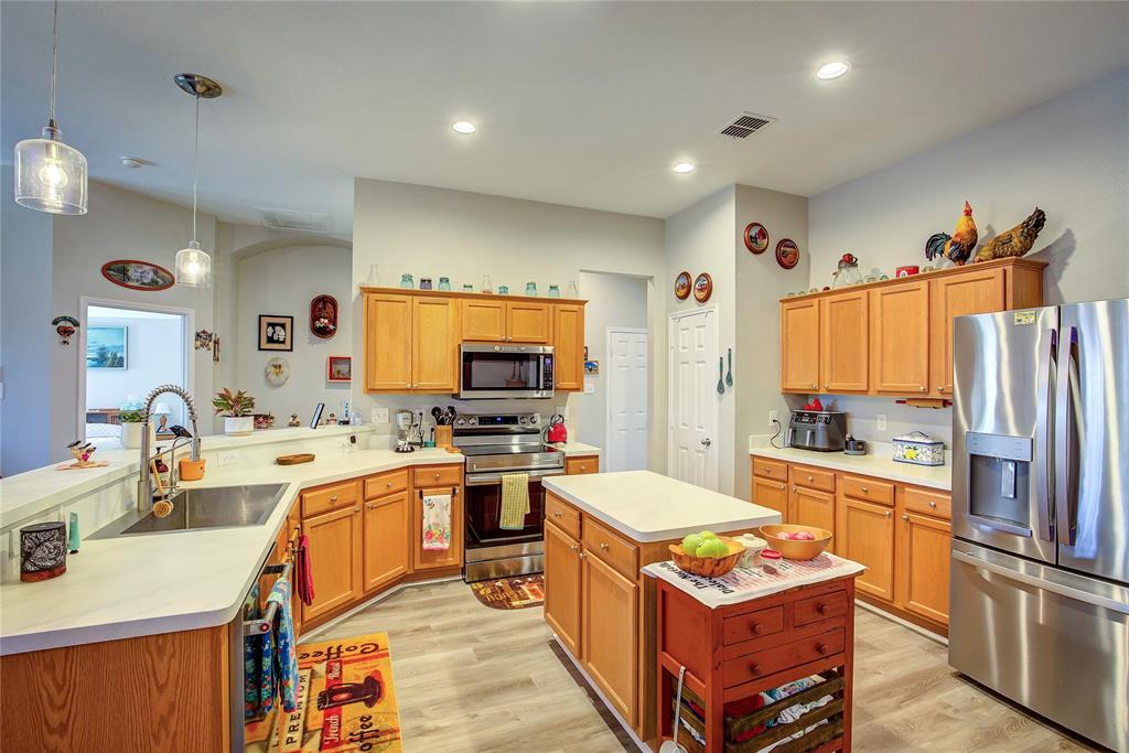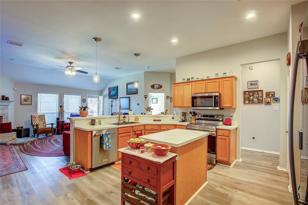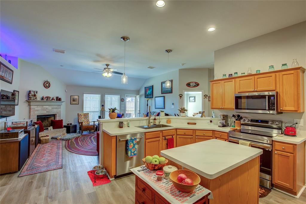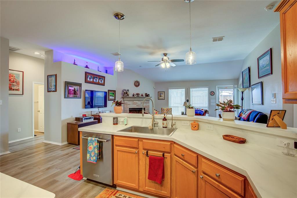 Fantastic Home in sought after location! Discover a bright and open interior with plenty of natural light and a neutral color palette, complimented by a fireplace. Meal prep is a breeze in the kitchen complete with a spacious center island. Relax in your primary suite with a walk in closet included. Other bedrooms provide nice flexible living space. The primary bathroom is fully equipped with a separate tub and shower, double sinks and plenty of under sink storage. Take it easy in the fenced in backyard. This sitting area makes it great for BBQ's! Don't wait! Make this beautiful home yours today.