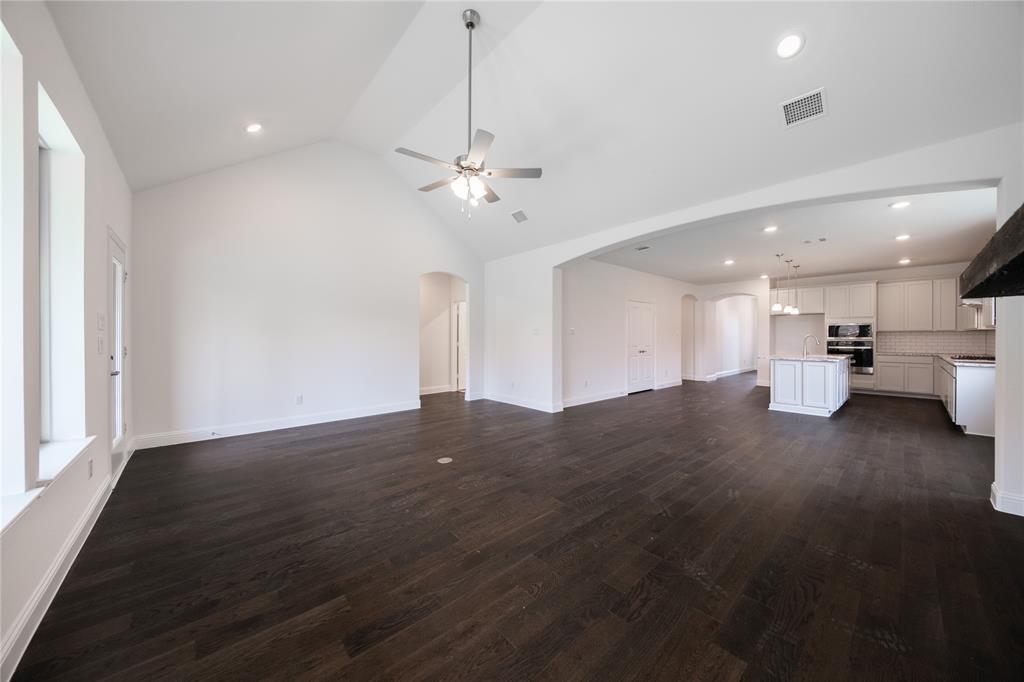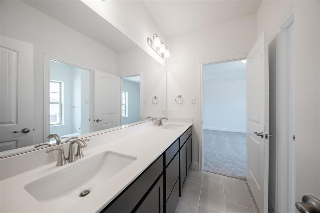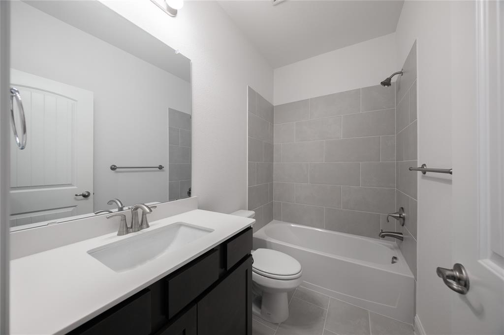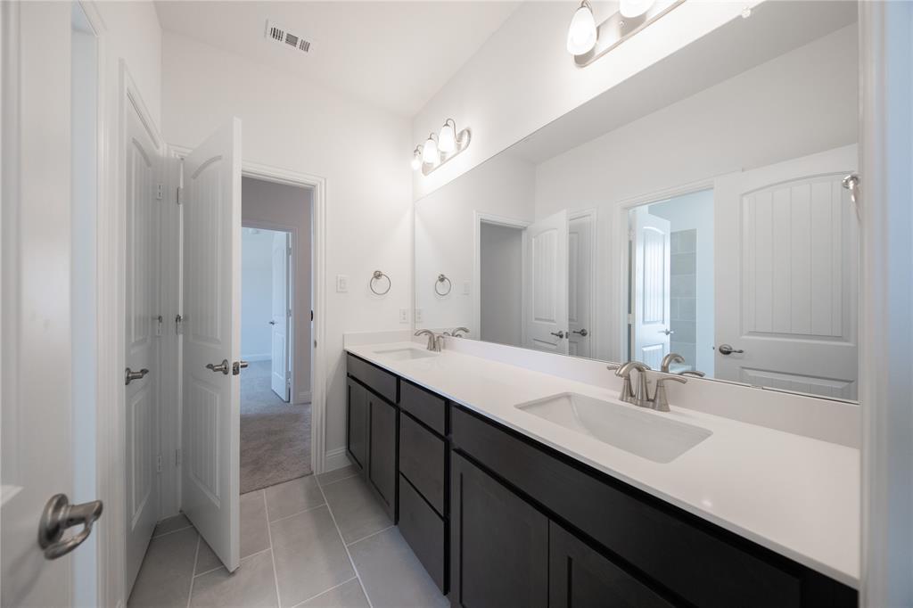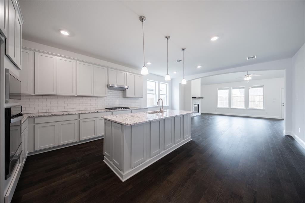 Designed with the latest trends in mind, this home showcases quartz countertops, rich hardwood flooring, and striking 42-inch tan cabinetry.