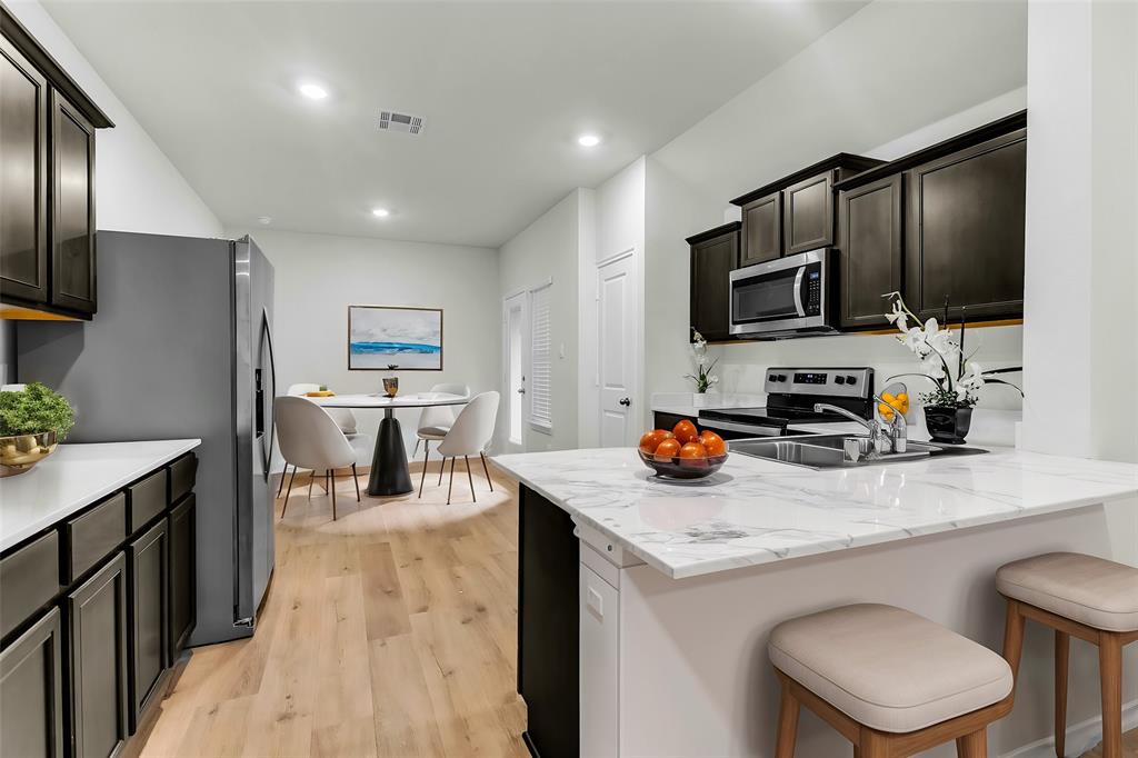 Like new 3 bedrooms, 2 bathrooms home with a spacious private backyard. Open floorplan in living areas, and primary bedroom is separated from guest bedrooms. Main bedroom has a large walk-in closet, linen shelving and a stand-in shower. Quick access to Highway 80 and Lake Ray Hubbard. The community is part of the master planned Travis Ranch which allows residents access to available amenities such as resort style pool, splash pad, multiple parks with pavilions, playground areas and grills. H-E-B store is coming early next year!