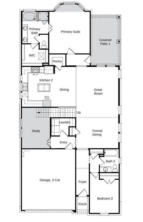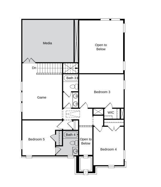 Additional highlights include: study, media room, 4th bathroom, bay window in primary suite, drop-in tub in primary bath, mud set shower in bath 2, covered patio.