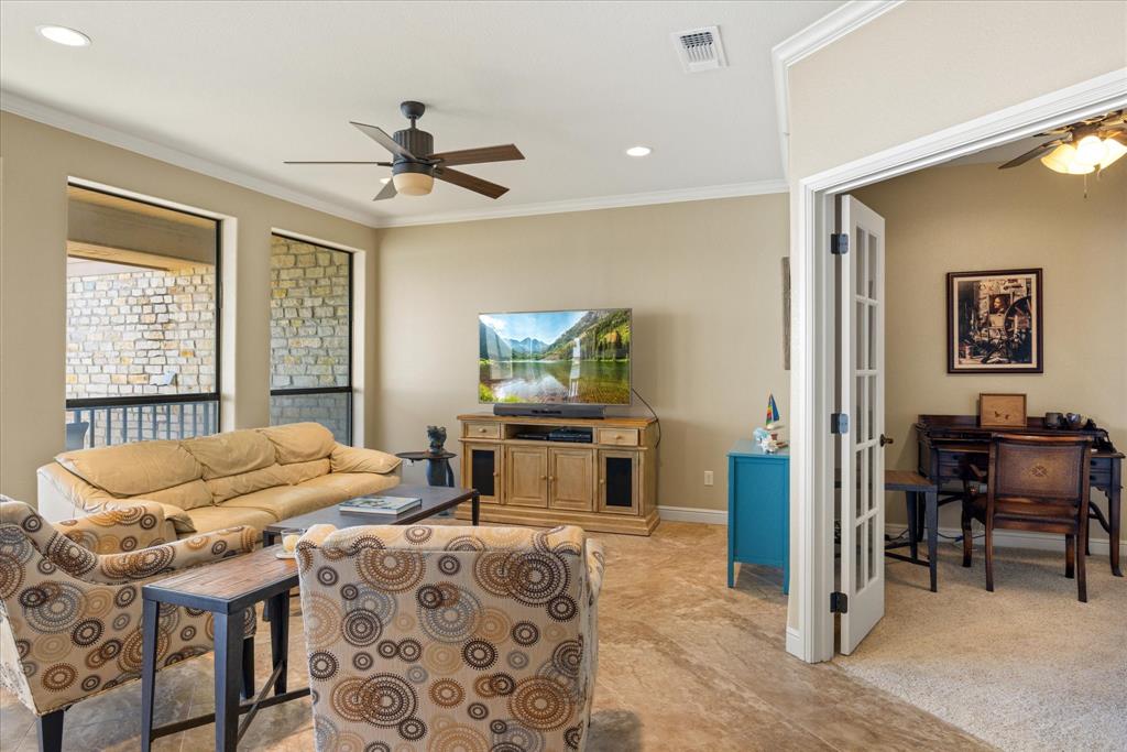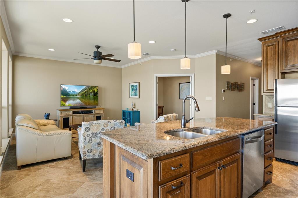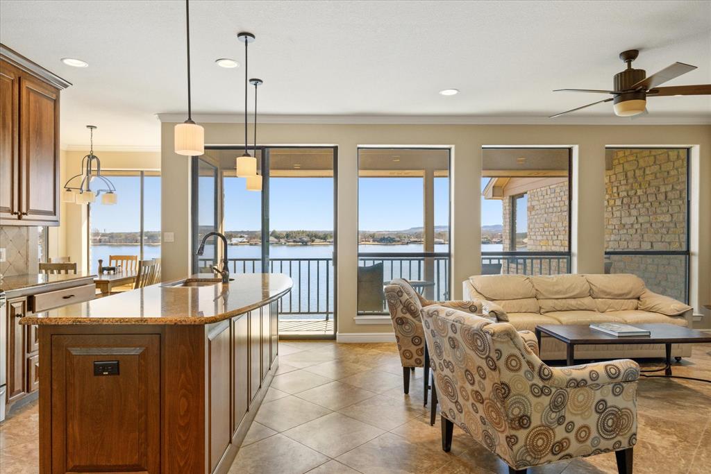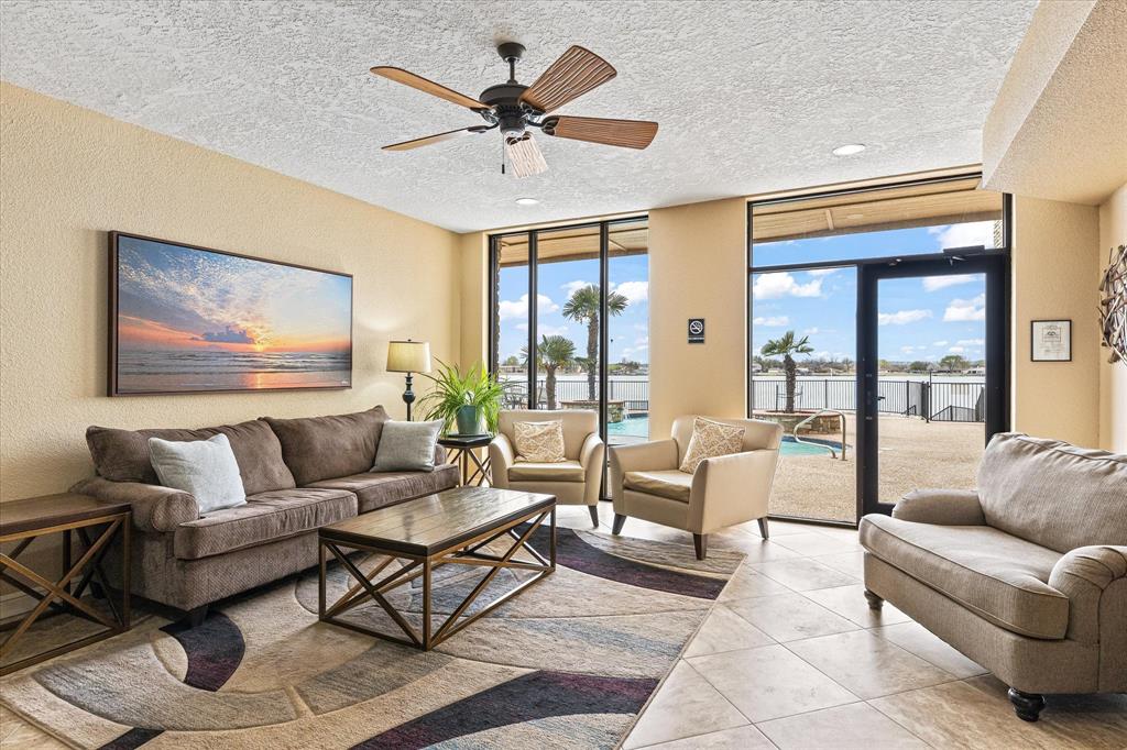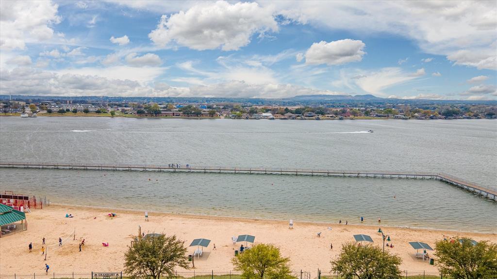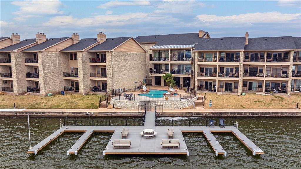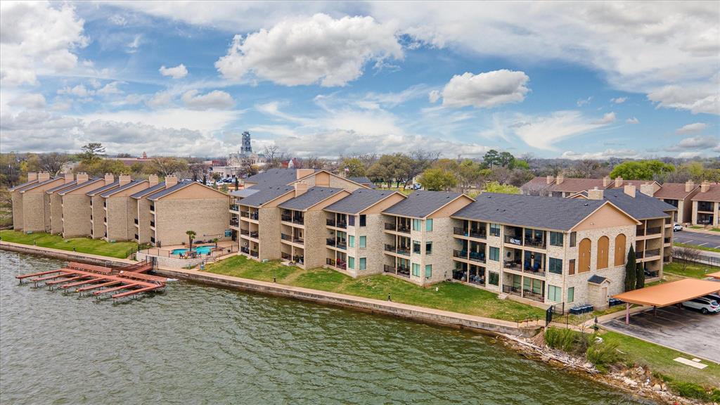 Experience the best of lakeside living in this beautifully updated 2-bedroom, 2-bath condo with a study, offering breathtaking views of Lake Granbury. Located just steps from the Historic Granbury Square, this home features plantation shutters, granite countertops, and ceramic tile flooring. The spacious kitchen boasts granite counters and large windows, allowing you to enjoy your meals with a scenic view. At the same time, the open-concept living area is filled with natural light and showcases stunning waterfront views through expansive windows. The primary suite includes an en-suite bath, complemented by a second bedroom and a dedicated study for added versatility. Relax on your private balcony or patio, the perfect spot to enjoy your morning coffee or unwind at sunset. Residents also have access to a community pool, perfect for cooling off on warm Texas days. Just a short walk from shopping, dining, and entertainment, this condo is close to City Beach and the Granbury Convention Center, offering endless recreational opportunities. Don’t miss this rare chance to own a stylish waterfront retreat in one of Granbury’s most sought-after locations. Washer, dryer,refrigerator, and bedroom furniture, and dining room table conveys.